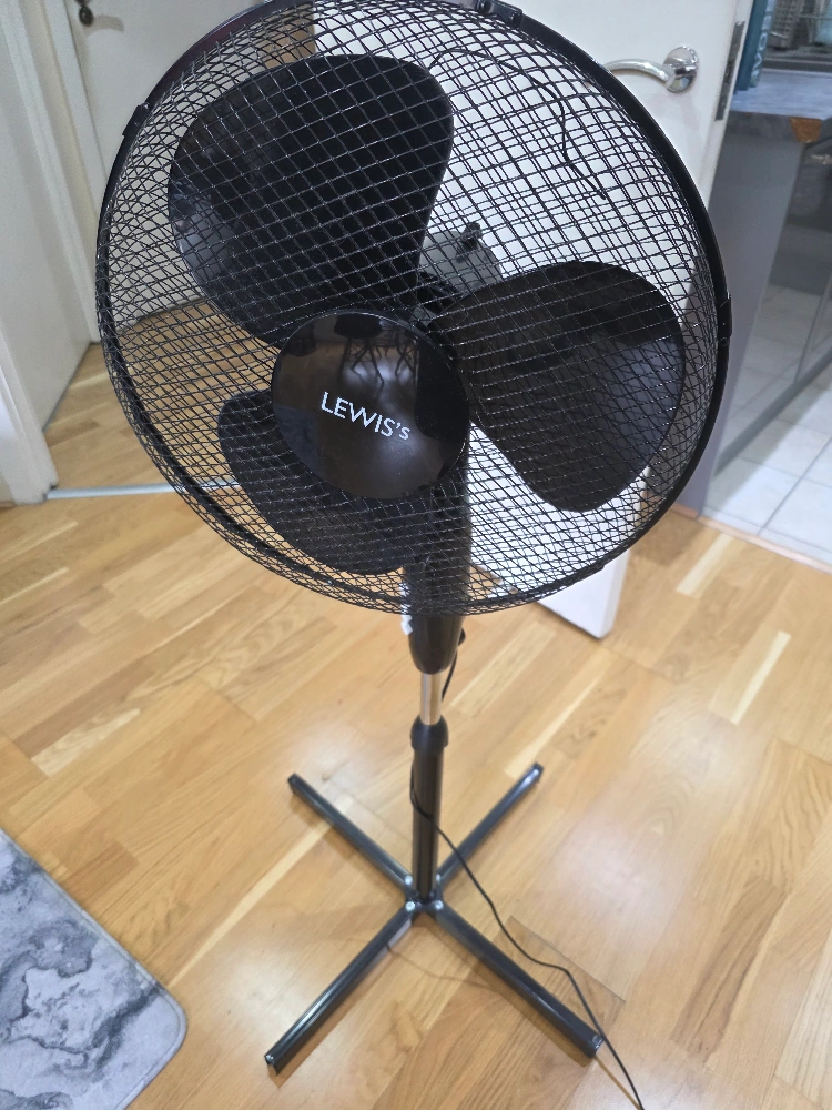 1 reviewBlack standing fan in perfect condition. Perfect for keeping cool during the summer months. Only used twice when there was a little sunny outside...I have 2 of these. price is per total not per item.