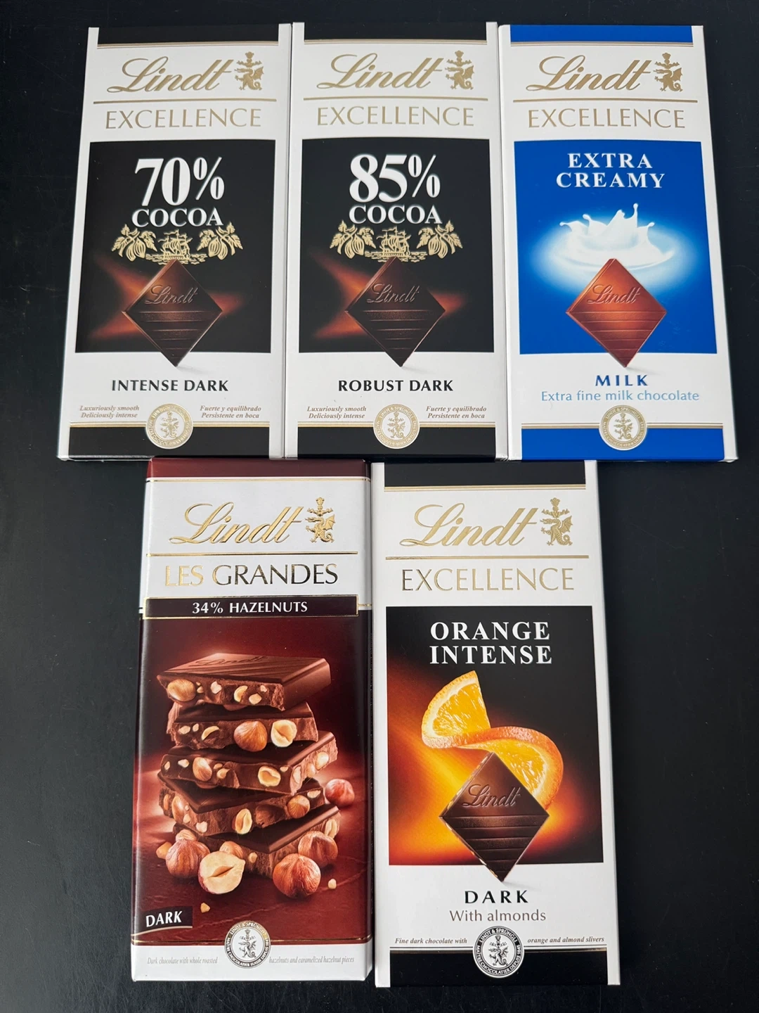 14 reviewsSelection of Lindt chocolate bars available: - Excellence 70% Cocoa Intense Dark - Excellence 85% Cocoa Robust Dark - Excellence Extra Creamy Milk - Les Grandes 34% Hazelnuts Dark - Excellence Orange Intense Dark with Almonds Perfect for a treat or gift! £1.50 each