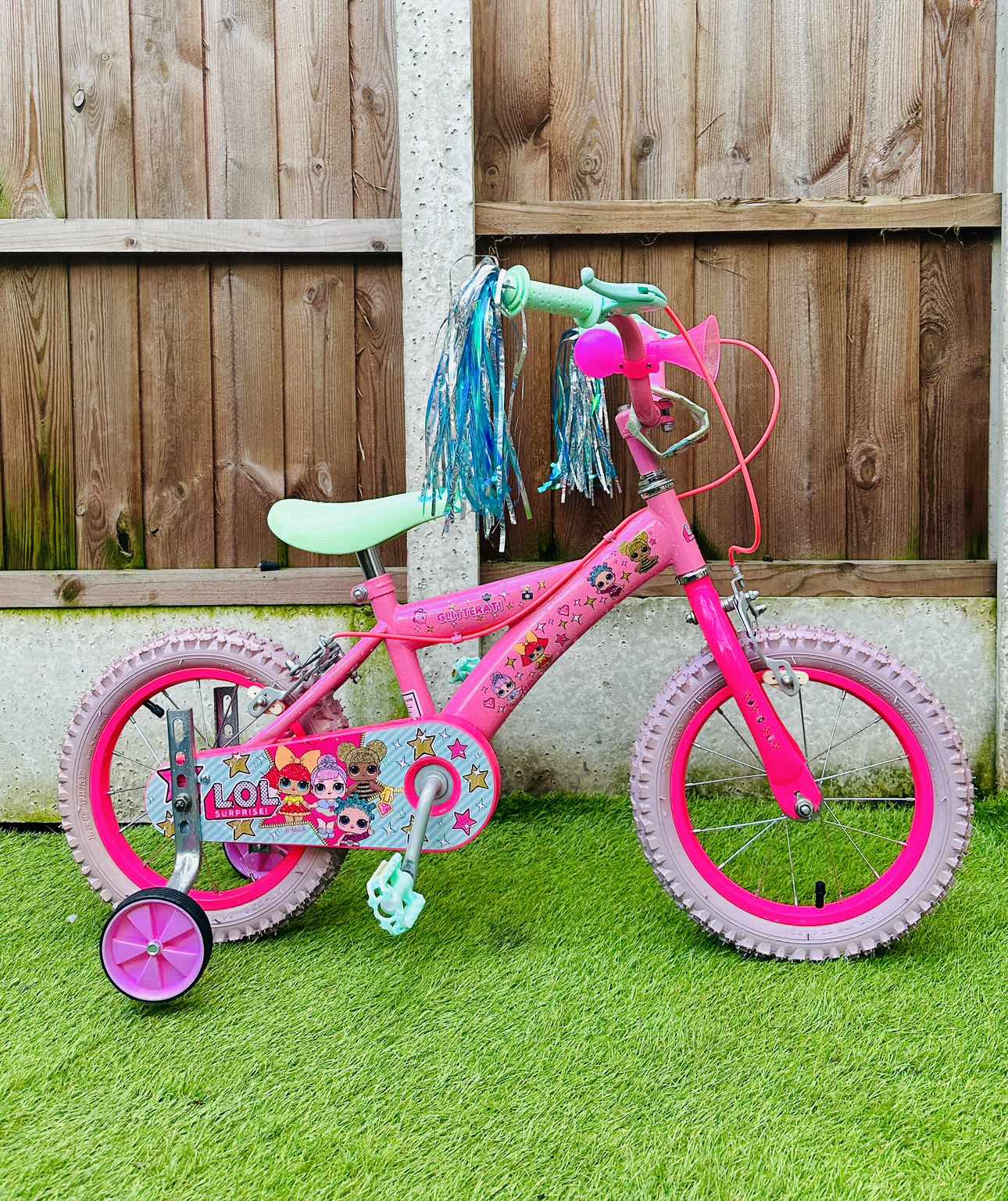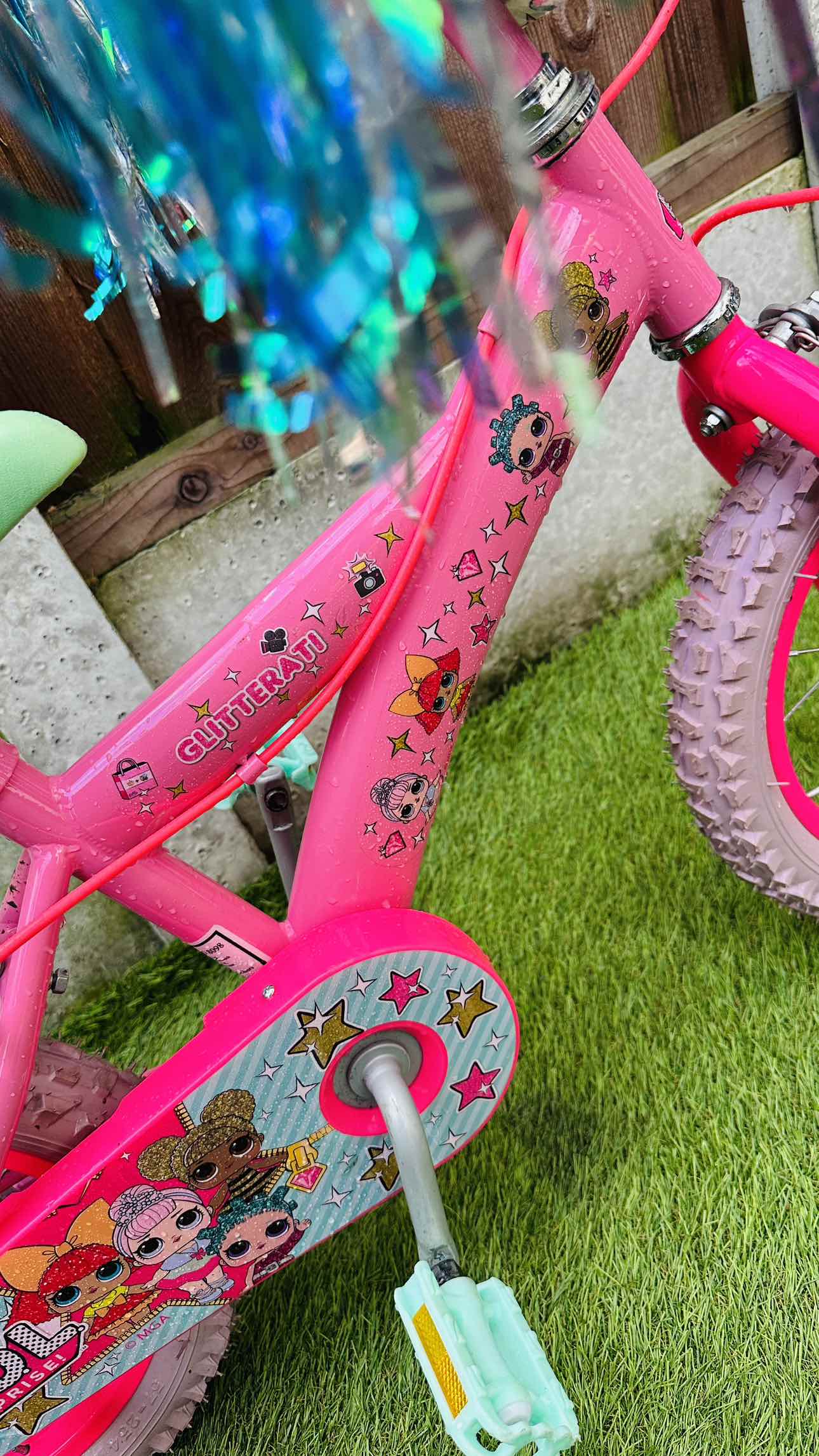 LOL SURPRISE GLITTERATI LITTLE GIRLS BIKE, fully working and fantastic condition Β£ Β£45 Please ask for more pics π π IDEAL PRESENT π€ΆβοΈ βοΈ14β WHEELS - PINK TYRES REALLY GOOD TREAD βοΈGOOD BRAKES AND CHAIN βοΈNEW PINK HORN βοΈNEW PINK UNIVERSAL STABILISERS βοΈNEW TASSELS STREAMERS Available extras π΄ββοΈ Lights, locks, stands, helmets, tassels, stabilisers, stunt pegs, bells, horns, mobile phone holders, handgrips π΄ββοΈ β π΄ββοΈπ΄ββοΈ I HAVE LOTS MORE BIKES FROM SMALL KIDS TO ADULTS, click the link below to my page, I add more bikes every evening π΄ββοΈπ΄ββοΈβ https://www.facebook.com/profile.php?id=100068040301706 π like and share my page to follow me and see the bikes as they go on ππ Part ex you old bikes - each bike considered π§ π΄ββοΈTry before you buy - Sold as seen - No returns or exchanges on used bikes