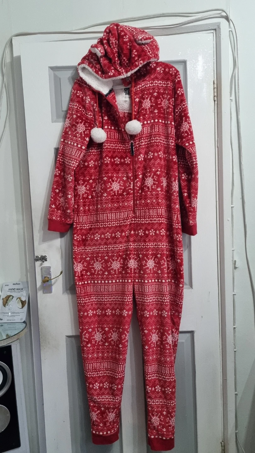 24 reviewsSnuggle up in this festive red Christmas onesie from London & Sleep! It features a fun snowflake pattern and a cosy hood with cute details. Perfect for those chilly winter nights. From Debenhams