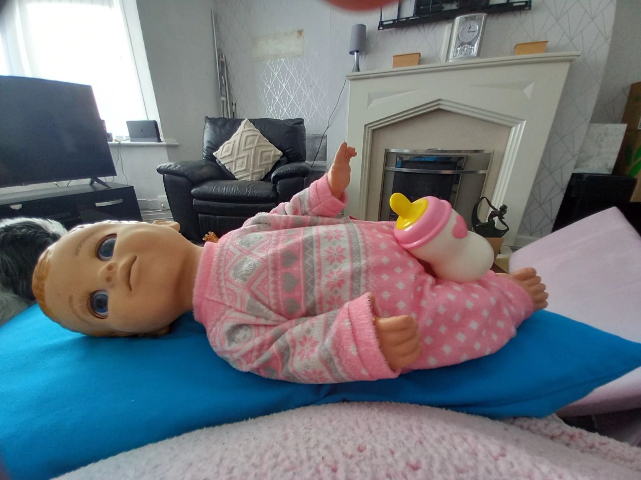 3 reviewsLuva-bella doll in a pink and white patterned outfit, comes with a little bottle. It's in good condition and ready for a new home!