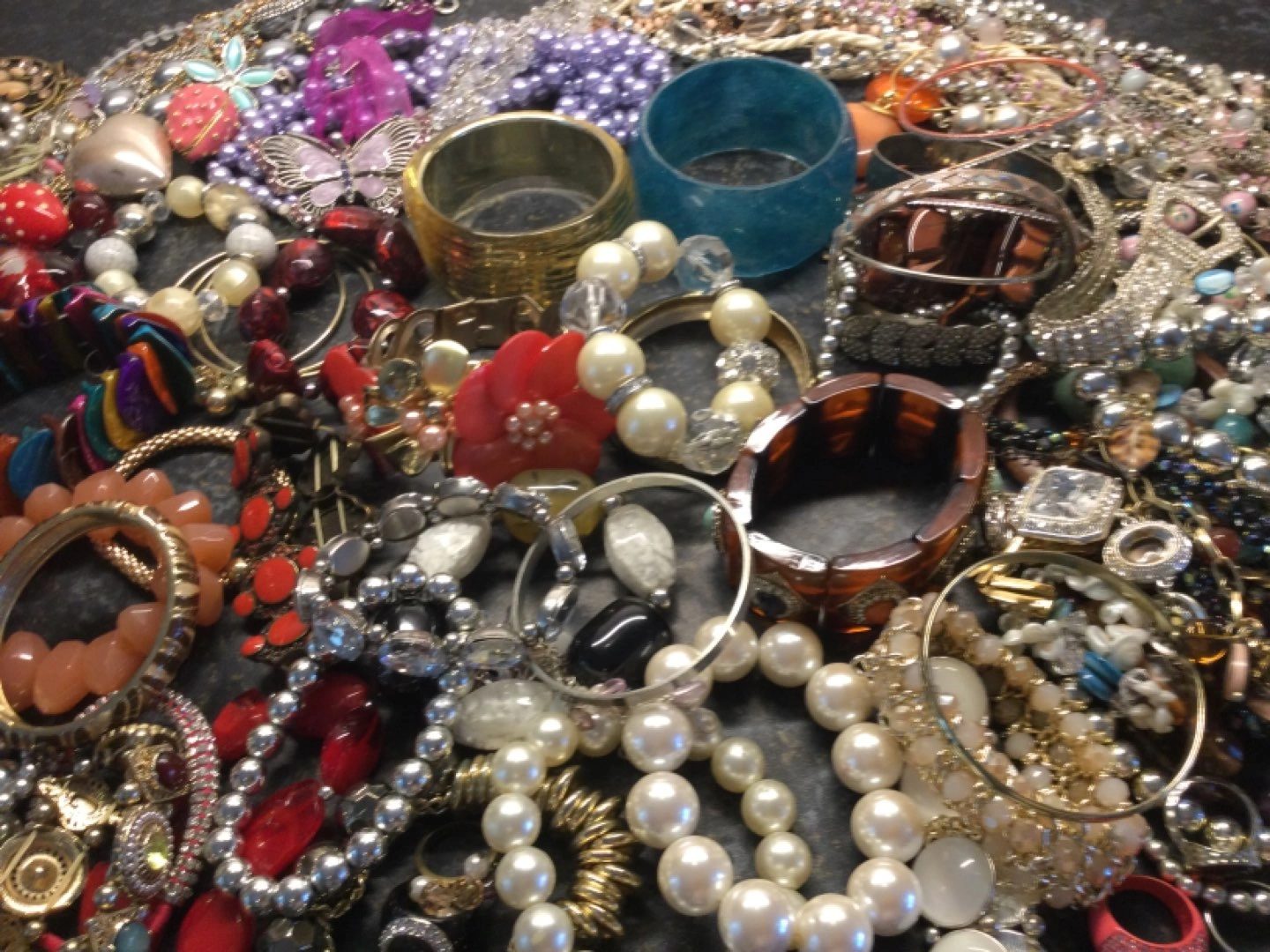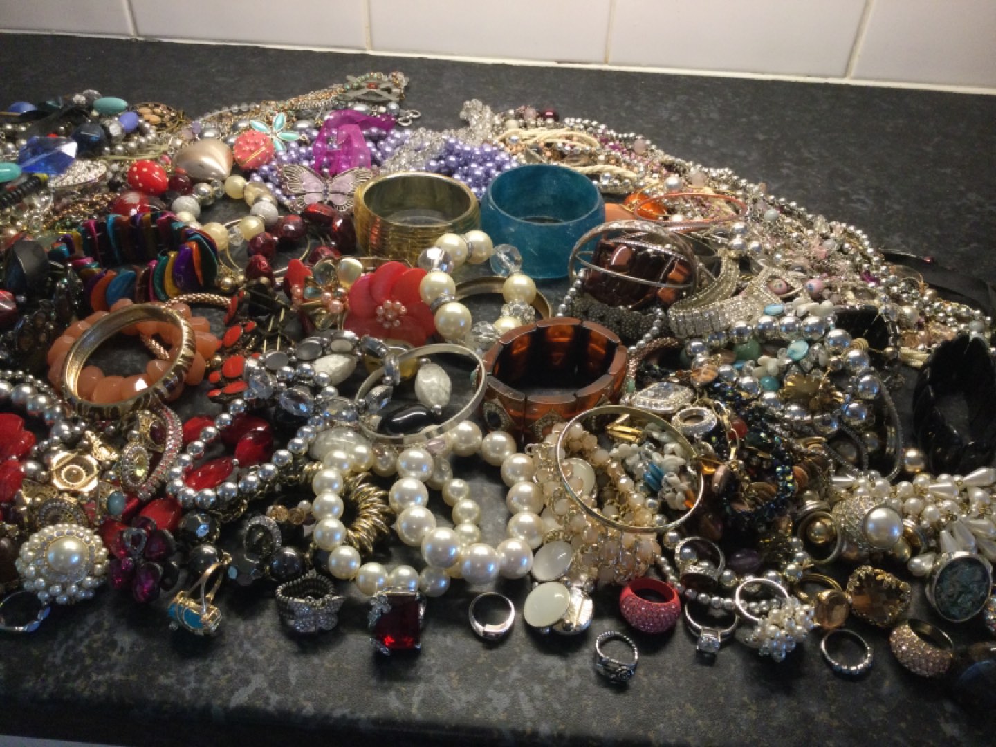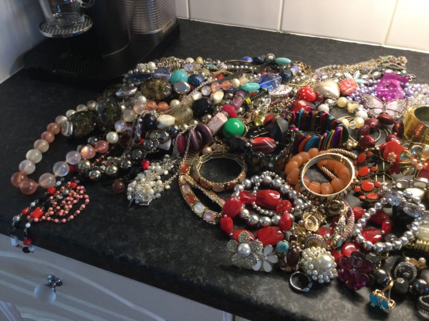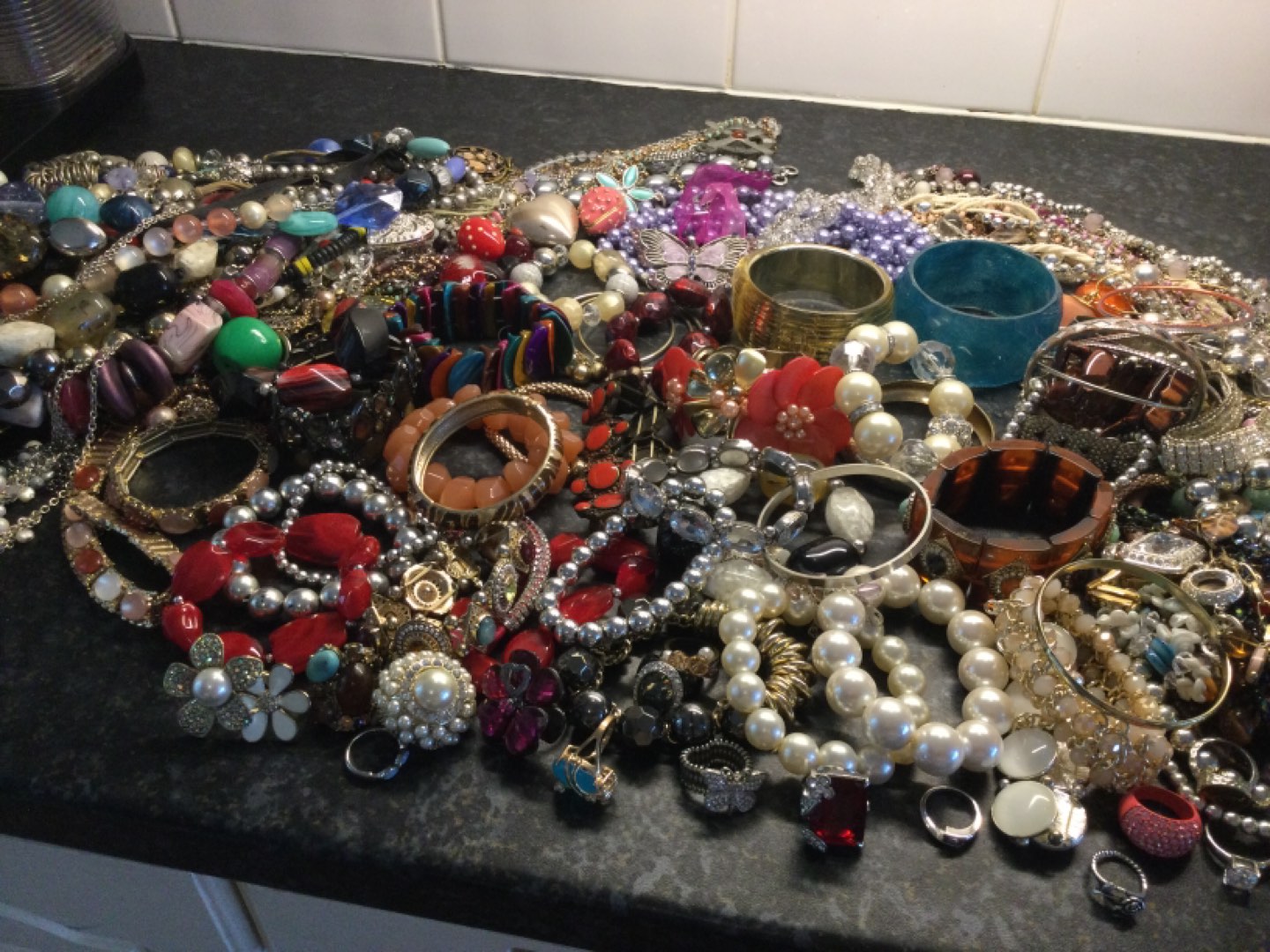 2 reviewsA massive amount of bracelets necklaces and rings so perfect condition some not ideal jewellery making or costumes or theatres