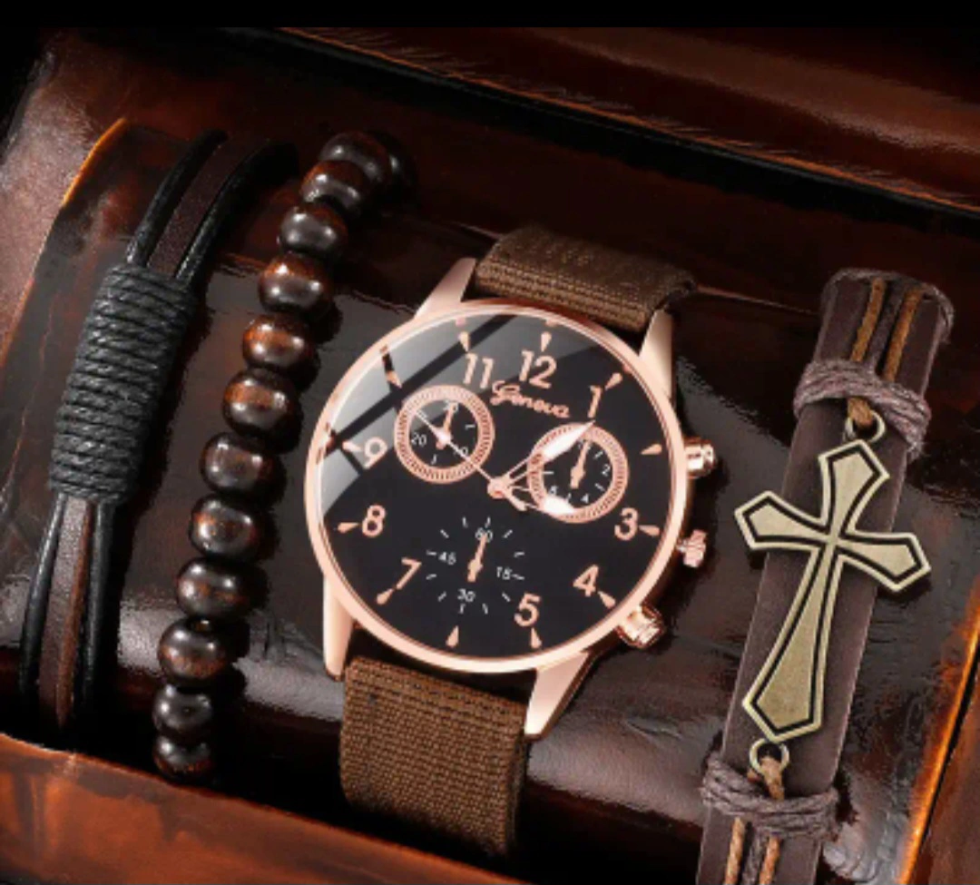 Show allQUICK last one! Men's canvas strap Fashion Sports/ Business Watch & 3pcs Bracelet Ideal birthday/fathers day Gift Collection only S65 No Reserve