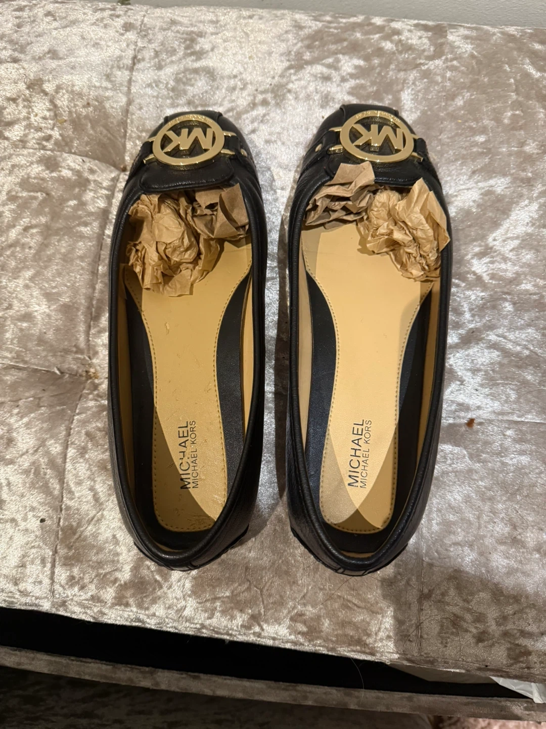 2 reviewsHere are some Michael Kors black leather size 5 flats. They are in excellent condition, little scruff at the end as you can see from the photos. Perfect for everyday wear! Real price £145