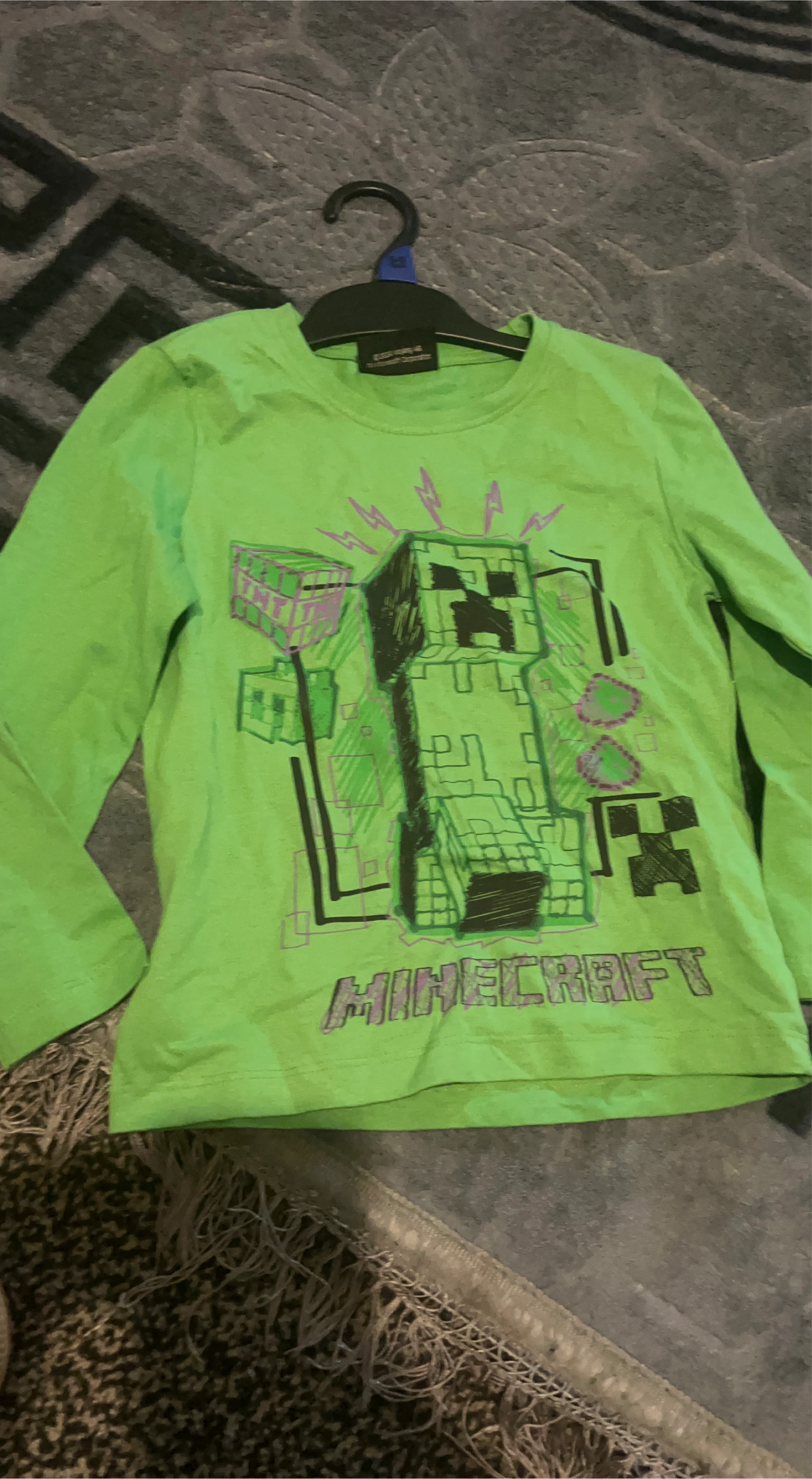 2 reviewsBright green Minecraft long sleeve top with a creeper design. Perfect for any young Minecraft fan