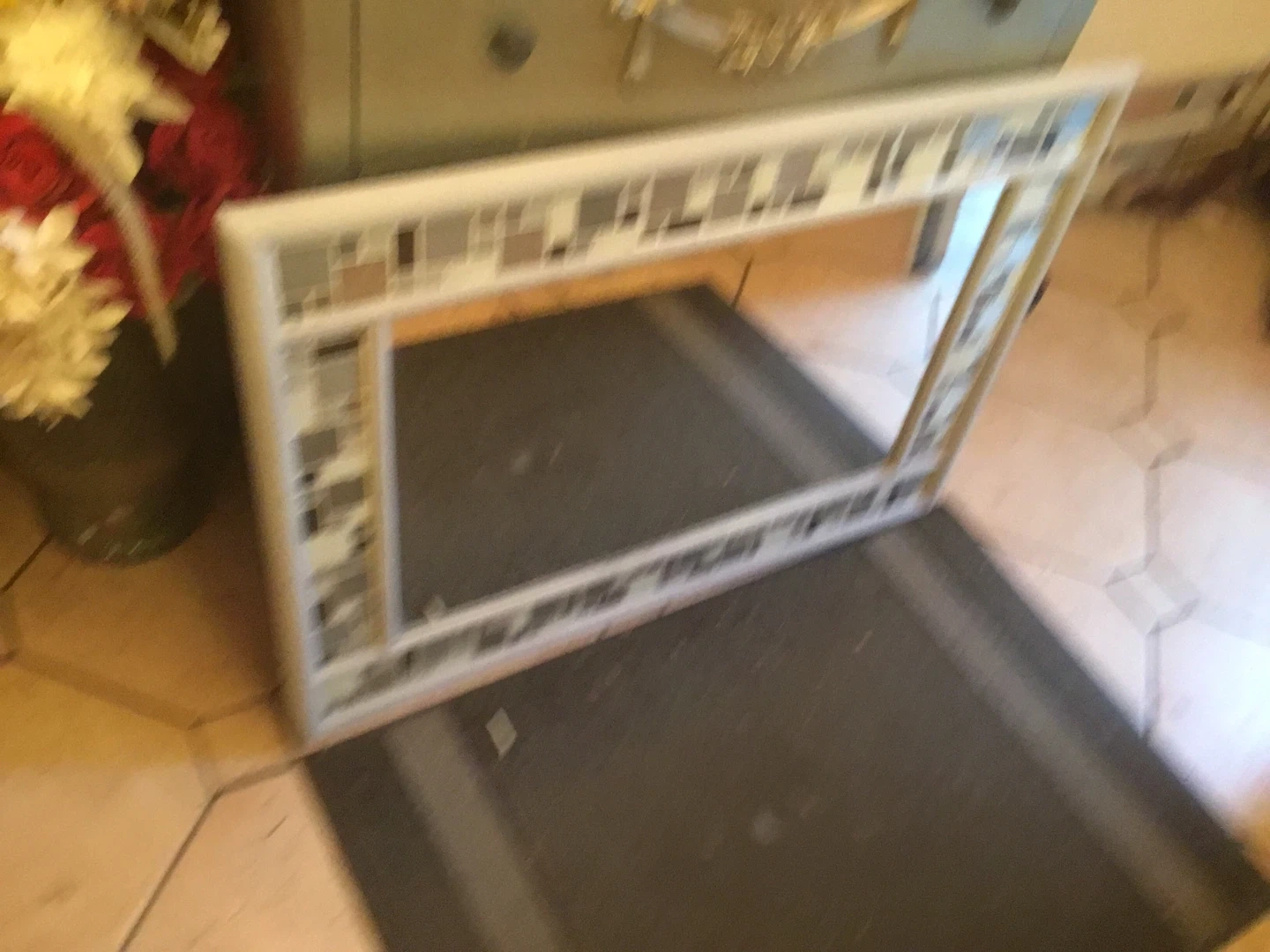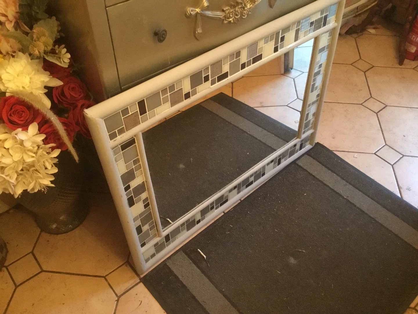 10 reviewsHere's a lovely mosaic framed mirror, perfect for adding a touch of style to any room. It's in great condition and ready to find a new home. It would look great in a bathroom or bedroom