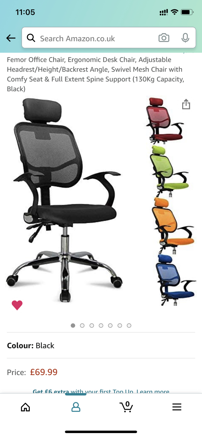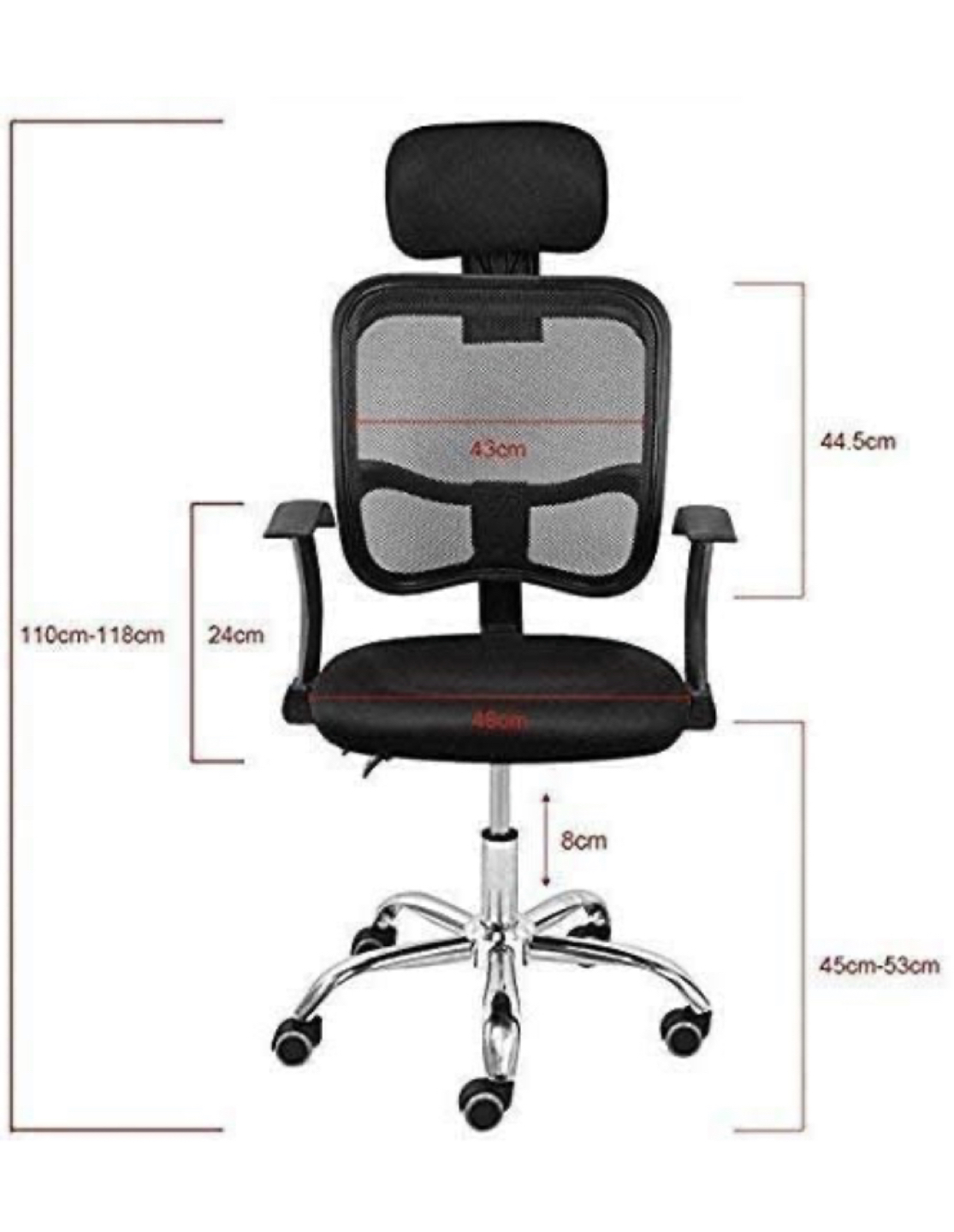 0 reviewsOffice Chair, Ergonomic Desk Chair, Adjustable Headrest/Height/Backrest Angle, Swivel Mesh Chair with Comfy Seat & Full Extent Spine Support (130Kg Capacity, Black) Brand new boxed and never assembled. Collection S41 Newbold road