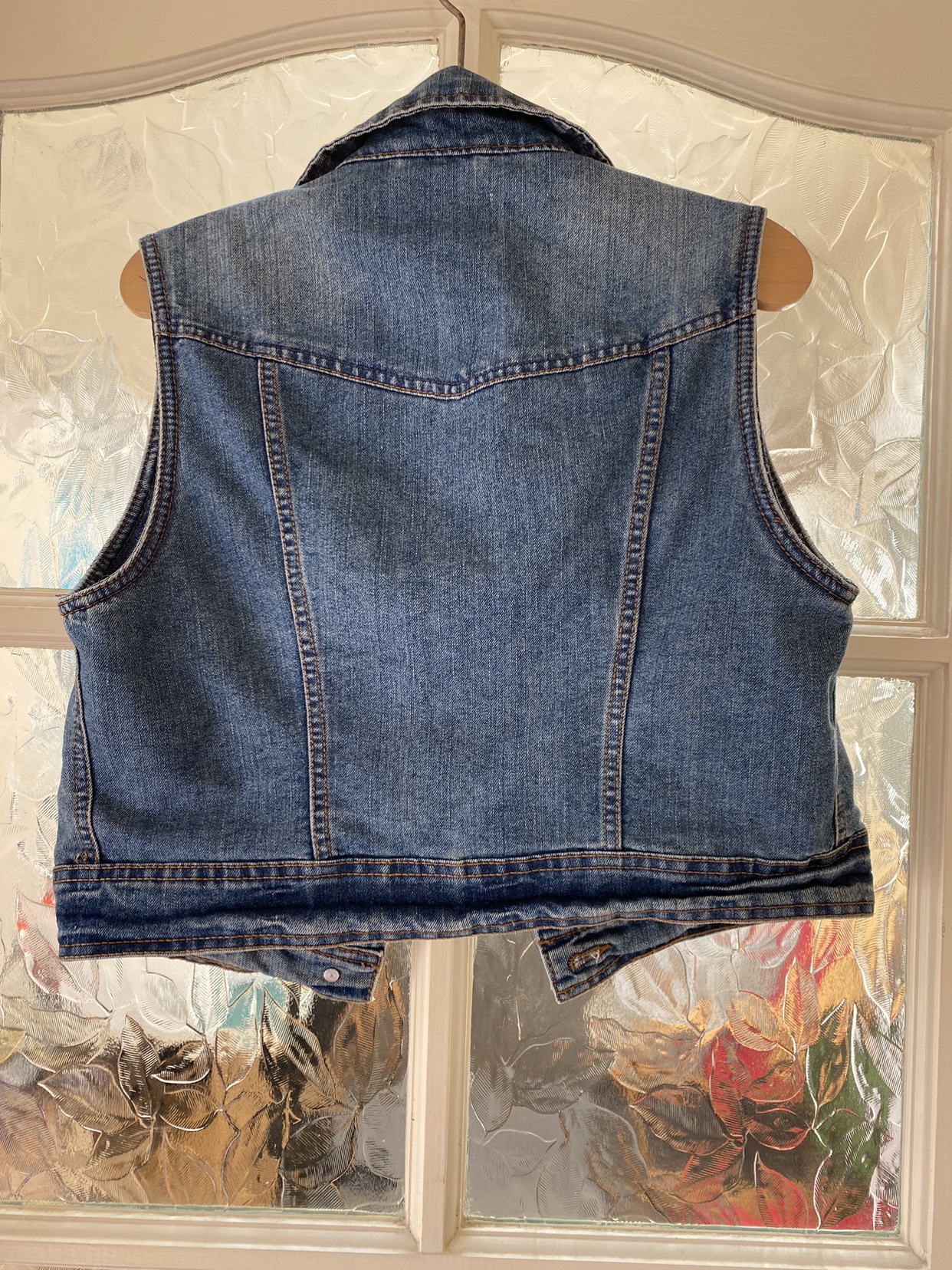 0 reviewsThis New Look waistcoat in size 12 is a stylish addition to any wardrobe. The denim fabric gives it a unique look, while the cotton blend material ensures comfort. The sleeveless design and short length make it perfect for layering over a long-sleeved shirt or blouse. The waistcoat features a button closure and a collared neckline, adding a touch of sophistication. It also has pockets, making it practical as well as fashionable. Machine washable for easy care, this waistcoat is a must-have for any woman who wants to update her wardrobe.