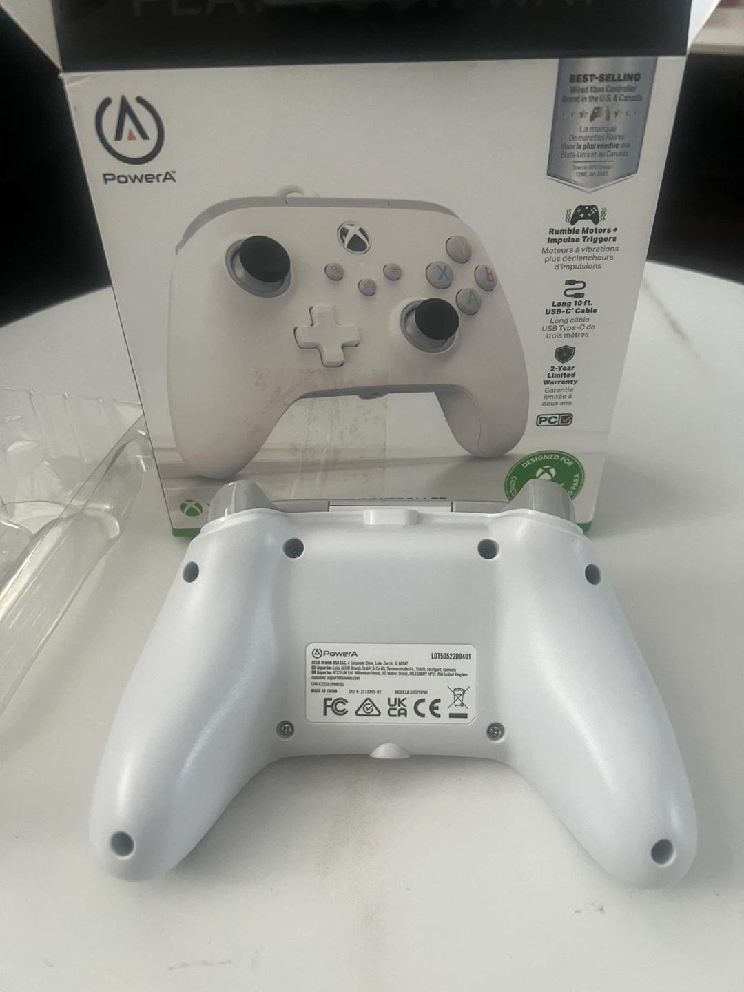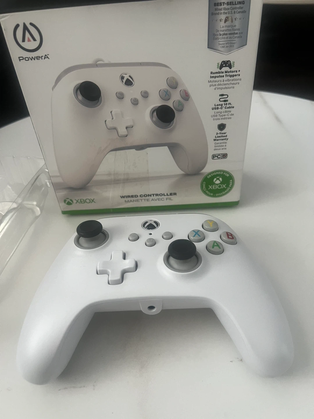 0 reviewsSelling a brand new PowerA Wired Xbox Controller in white. It's still in its original box and comes with all the components. It features rumble motors and impulse triggers for enhanced feedback. The cable is 10 ft long, giving you plenty of room to move about while gaming