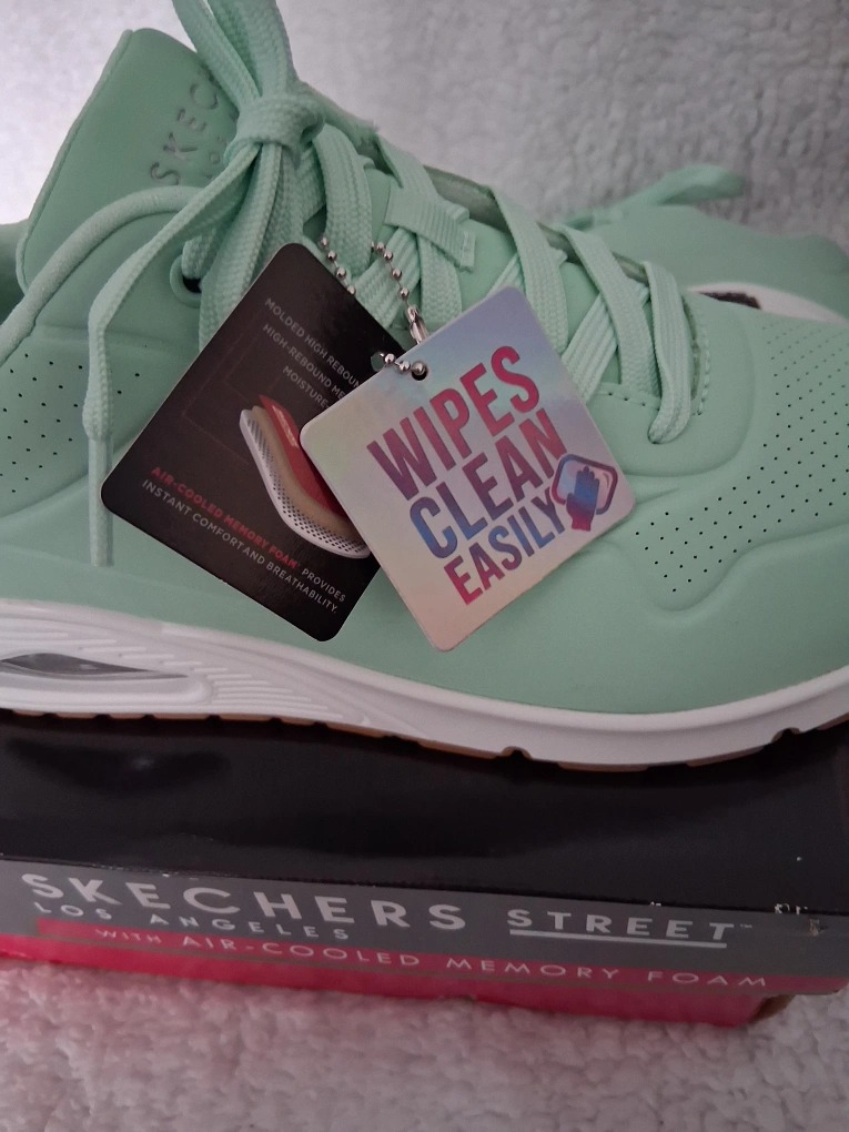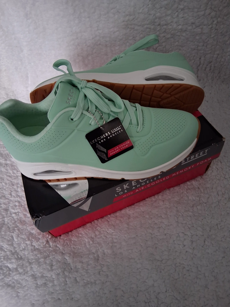 46 reviewsLadies Training Shoes Manufacturer - Skechers Series - Los Angeles/Street Size - 9 UK Colour - Cool Mint Brand New Never Worn Coming in Original Box These lovely trainers come with - Air Cooled Memory Foam, All Original Tags, Easy Wipe Clean. Excellent Condition Price - £60.00 ono Collection Croxteth Park area of Liverpool We may be able to post out to you if requested as long as postage is agreed upon first Any questions please dont hesitate to get in touch Thanks