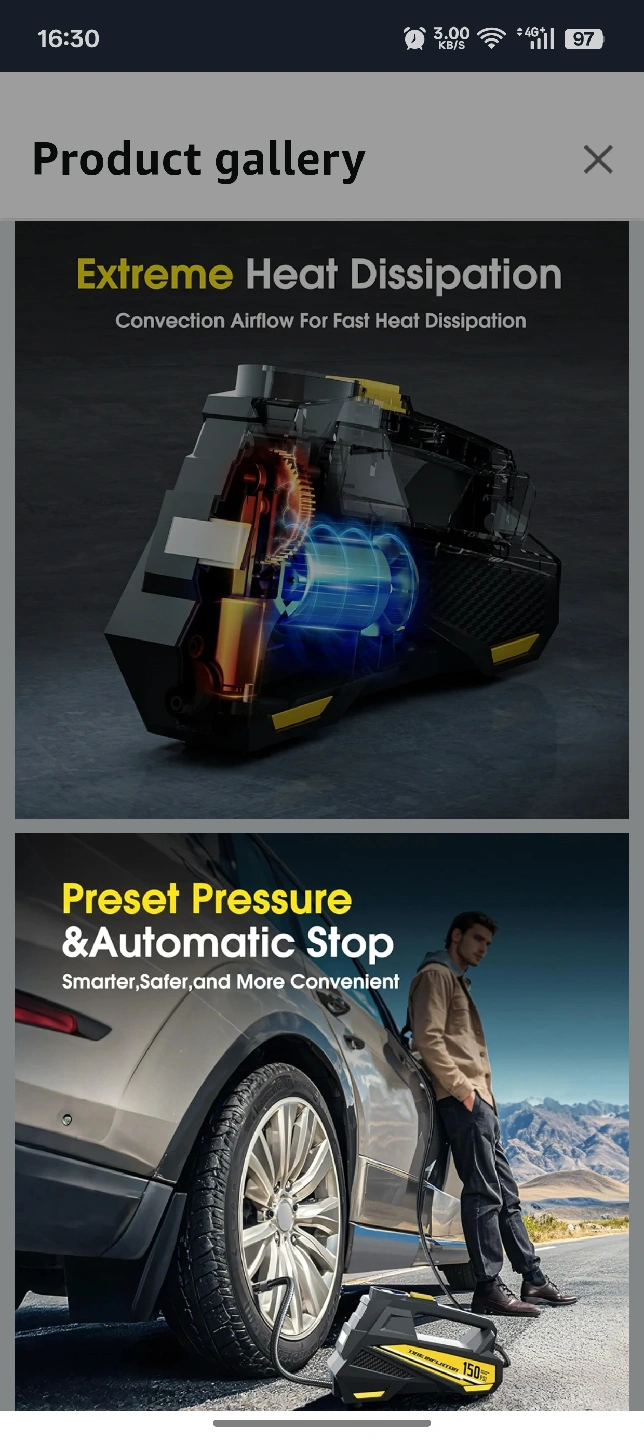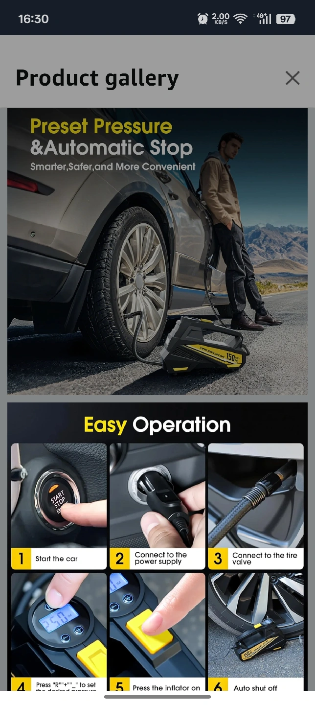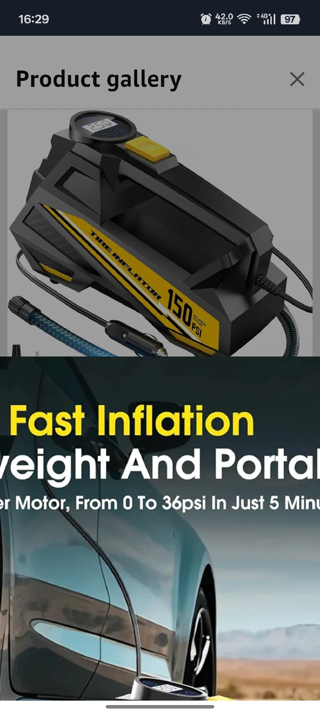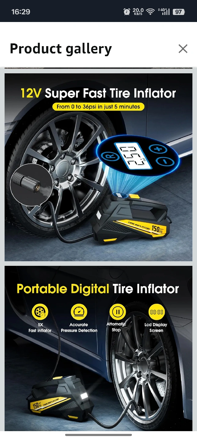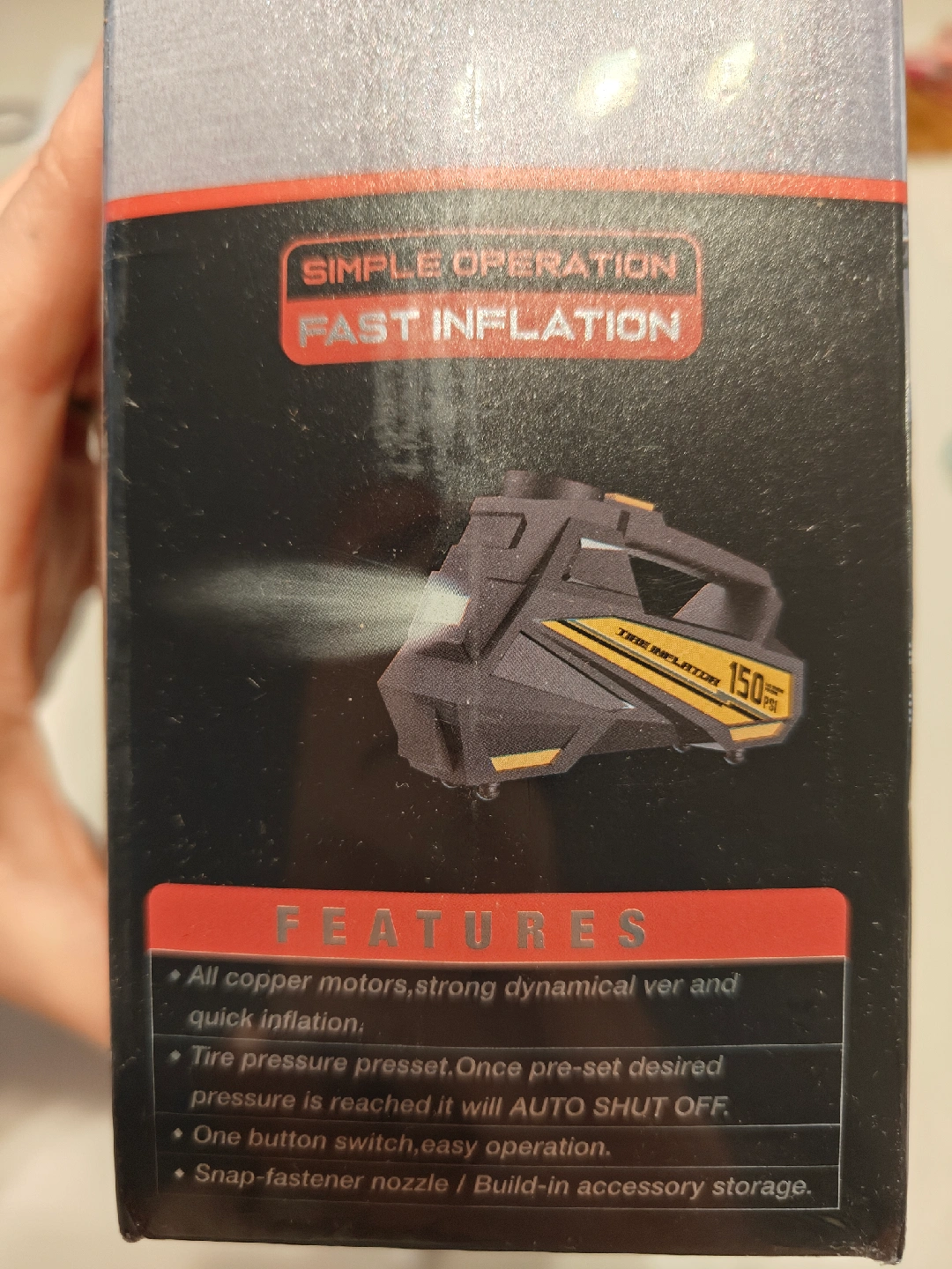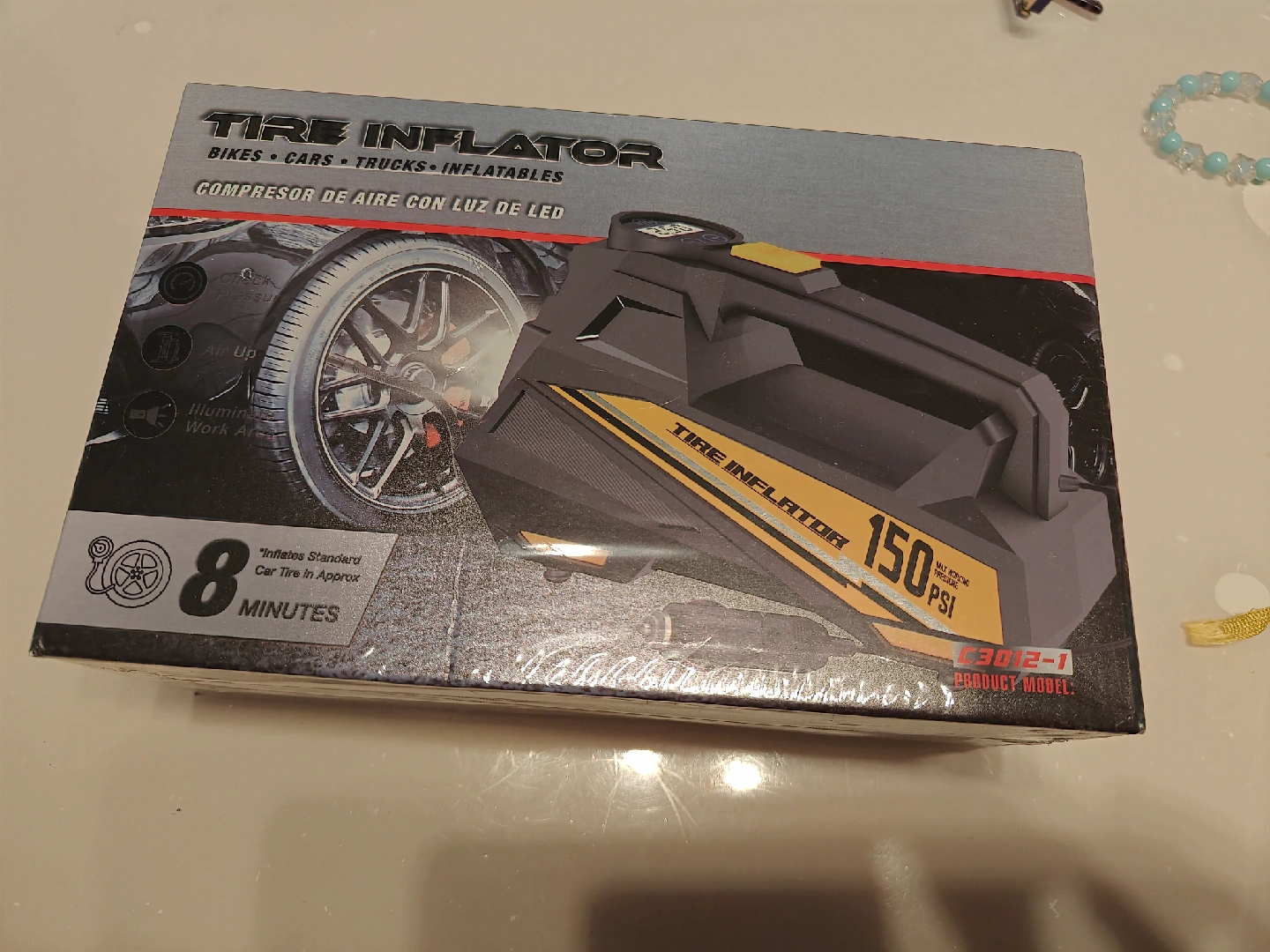 276 reviewsI'm selling a brand new tyre inflator, still in its original packaging! It's a handy tool to have for bikes, cars, trucks, and inflatables. It can inflate a standard car tyre in approximately 8 minutes. Key features include: - Simple operation - Fast inflation - All copper motors, strong dynamical ver and quick inflation - Tyre pressure preset. Once pre-set desired pressure is reached it will auto shut off - One button switch, easy operation - Snap-fastener nozzle / Build-in accessory storage - Digital display