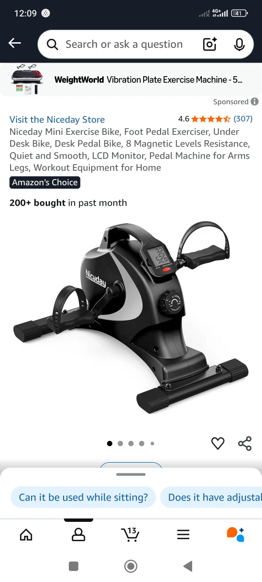 3 reviewsSelling a Niceday Mini Exercise Bike. It's a foot pedal exerciser that can be used under a desk. It has 8 magnetic levels of resistance and an LCD monitor. Perfect for arms, legs, and a quiet workout at home