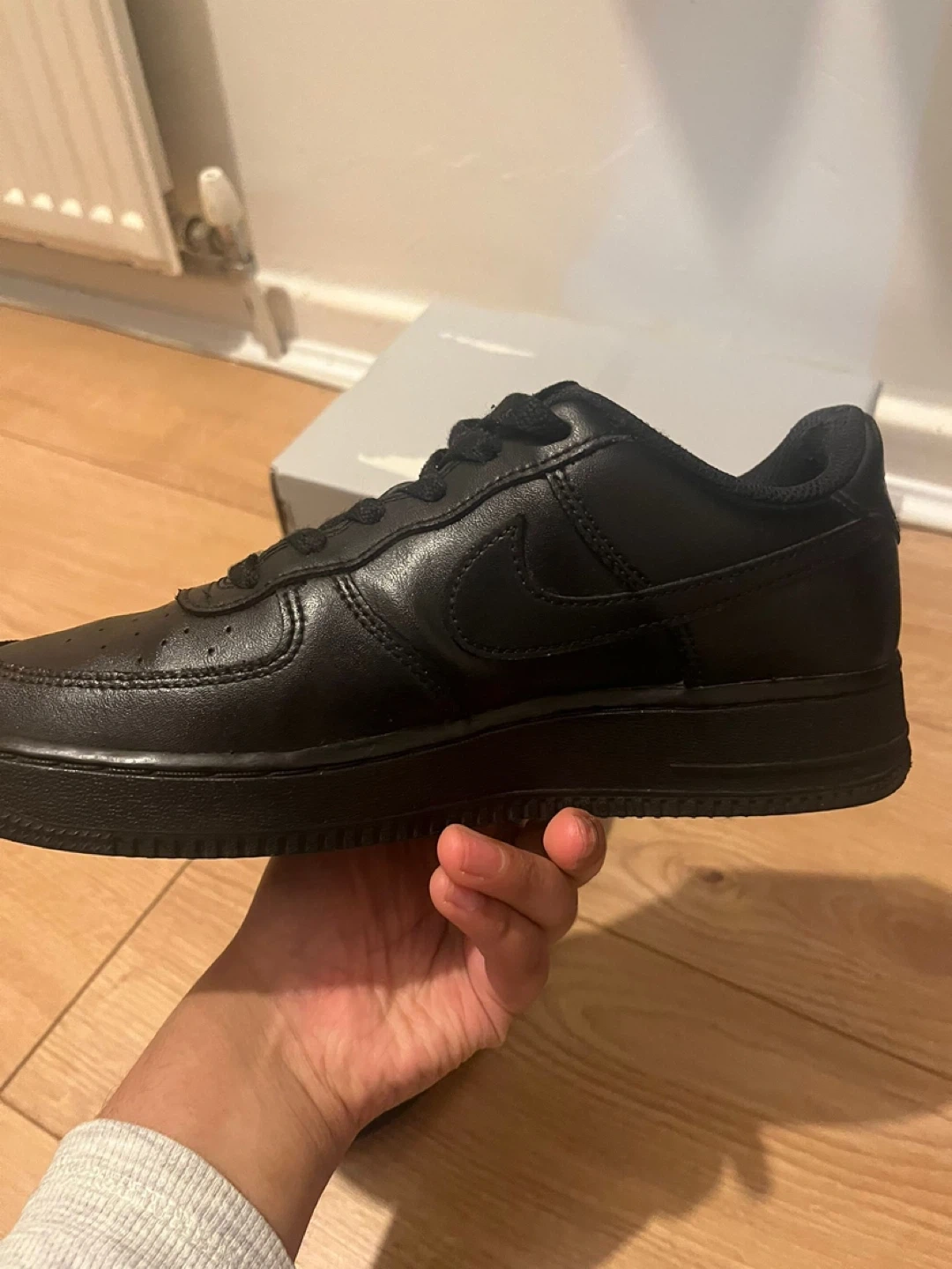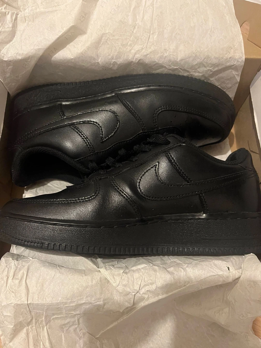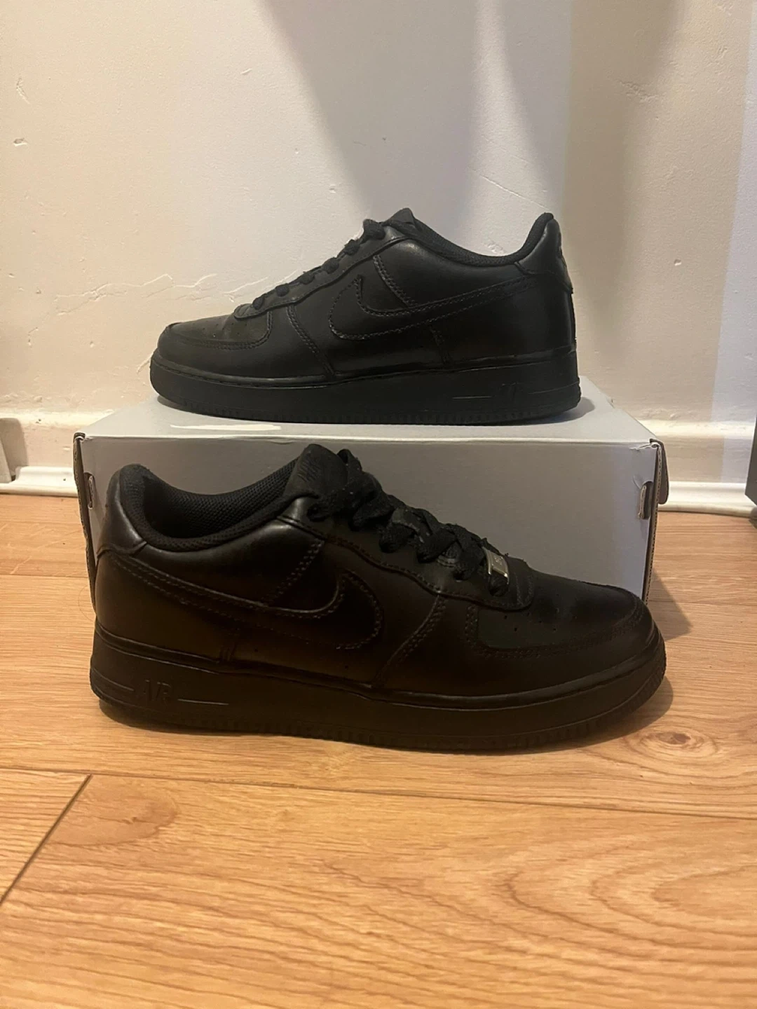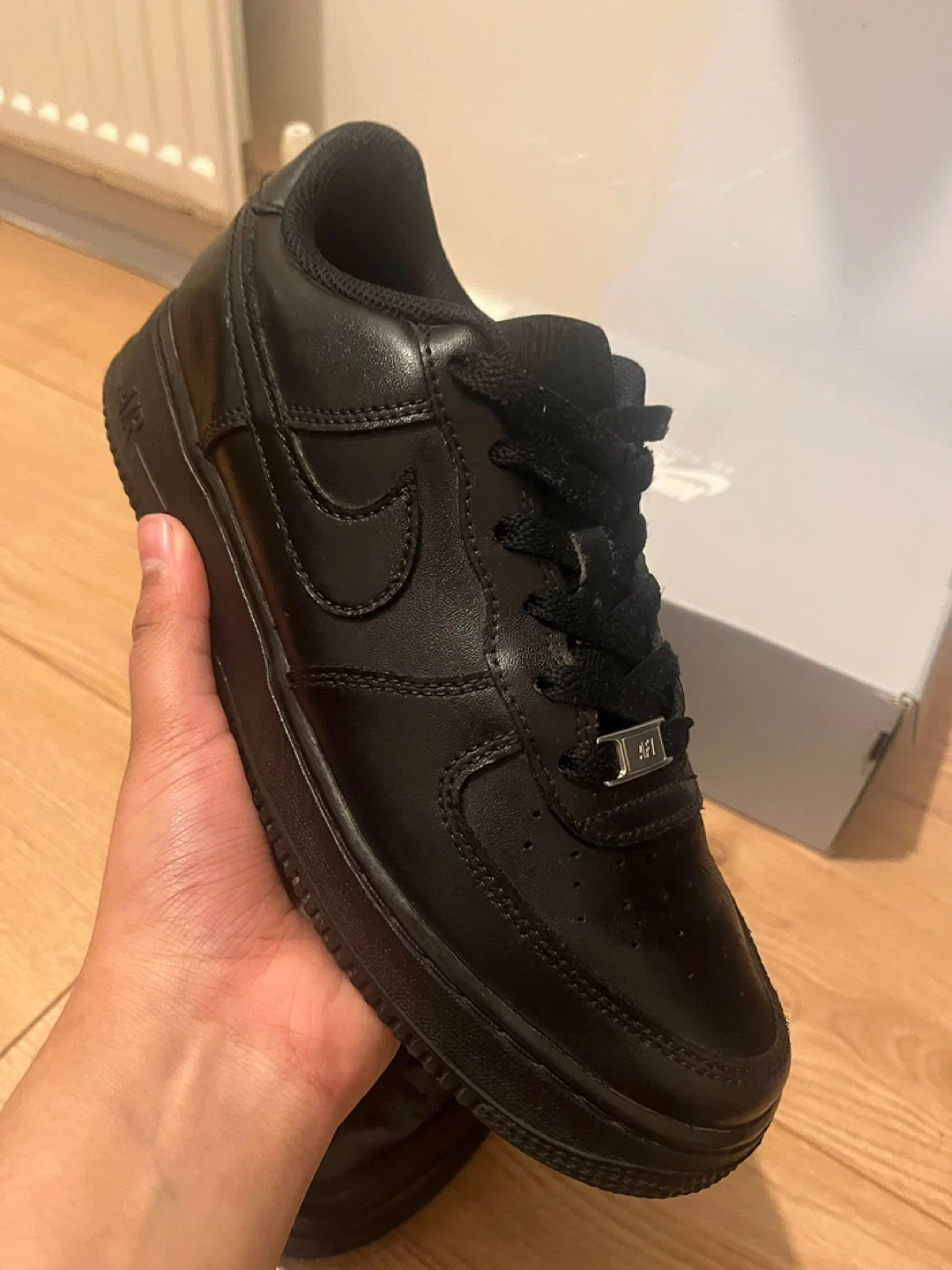 1 reviewSelling a pair of Nike Air Force 1 trainers in black leather. They're in good condition and come with the original box. A classic style that goes with everything! UK SIZE 6