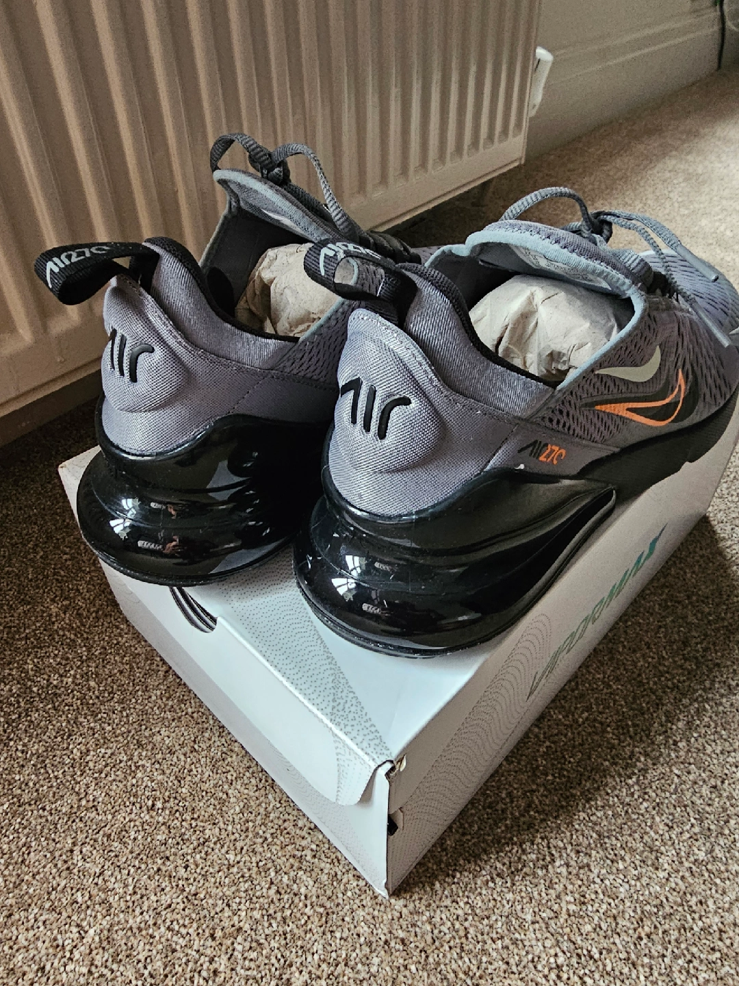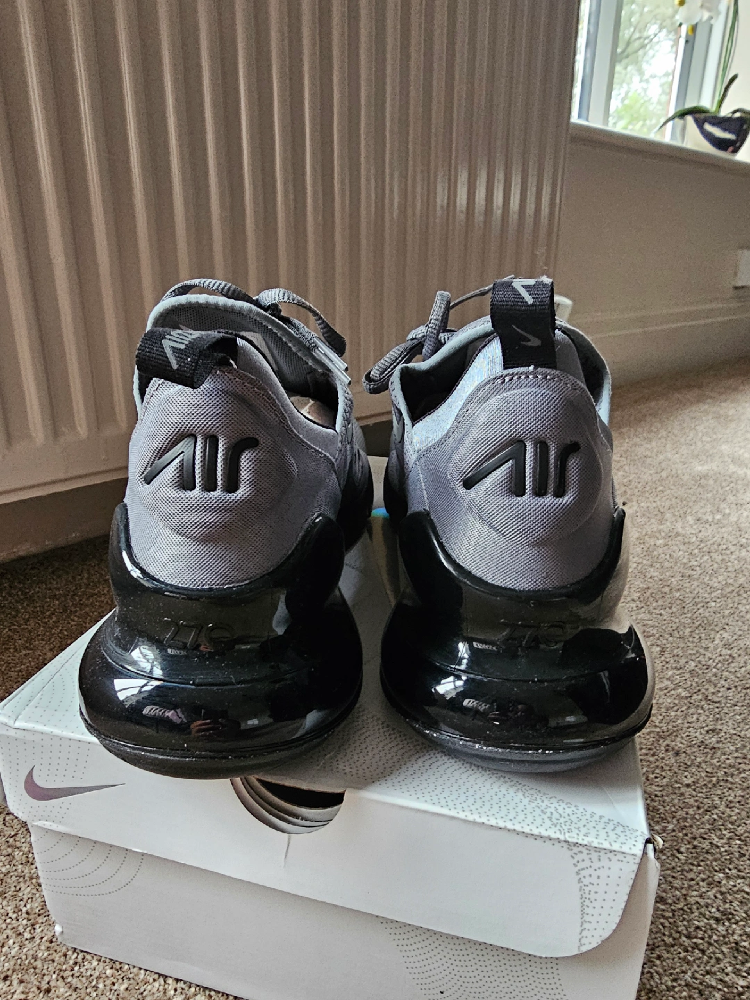 7 reviewsSelling a pair of Nike Air Max 270 trainers in grey and black. They're brand new A stylish and comfy pair of trainers!