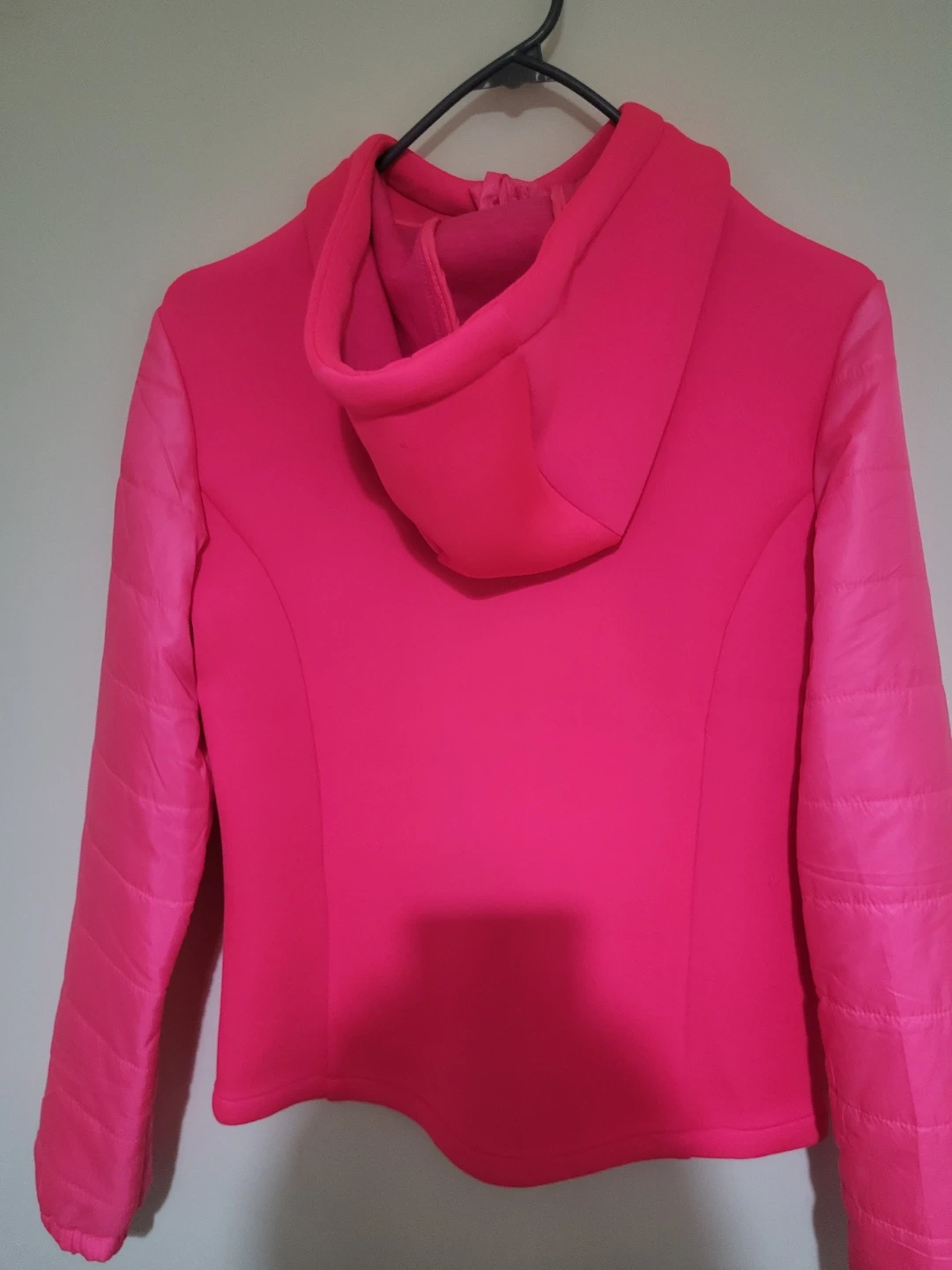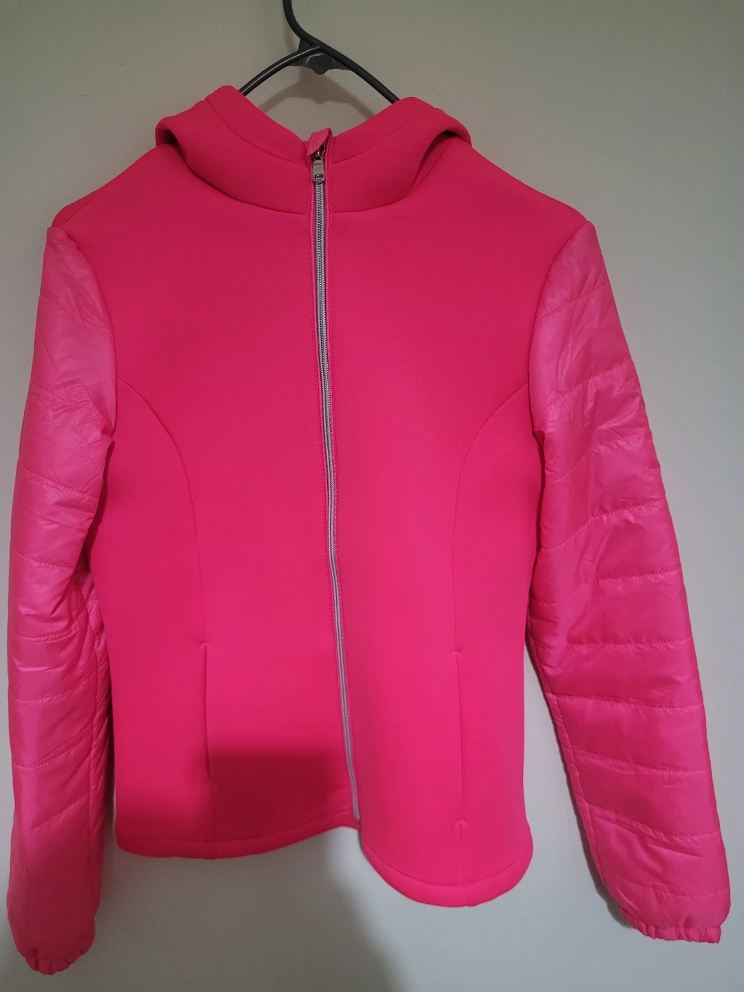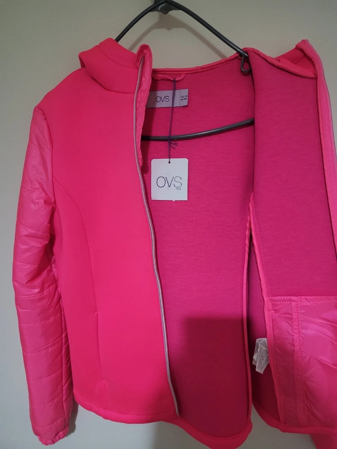 0 reviewsA bright pink hooded jacket from OVS, perfect for a young teen. It's a size 13-14 years. The jacket features a zip-up front and quilted detailing on the sleeves. New with tag. Collection only please.
