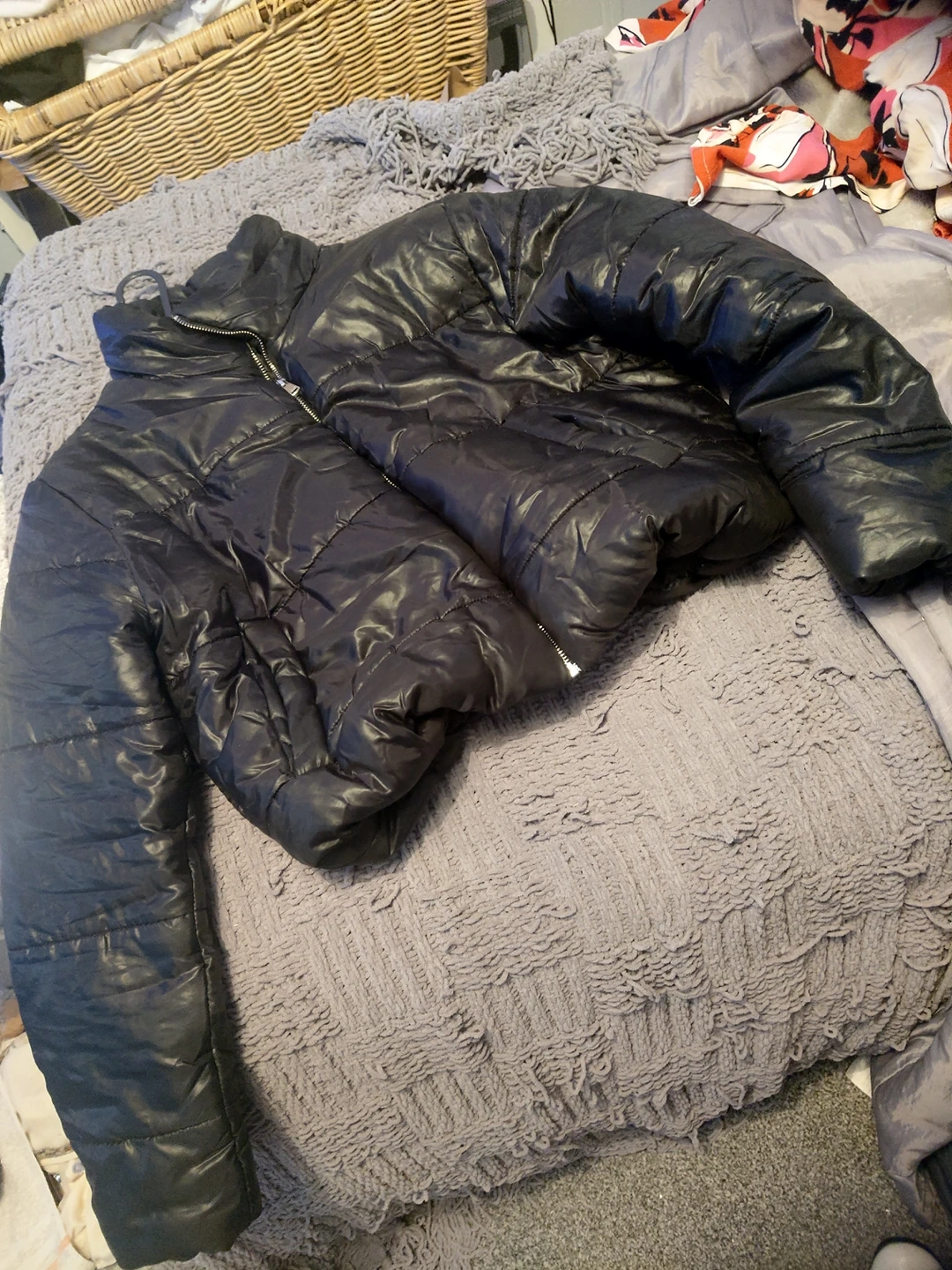 I have a Bnwt padded jacket wet look style cropped fit. never worn but I took the labels off. . paid £45 from RISING XL size and will fit 14-16 #EarthDay
