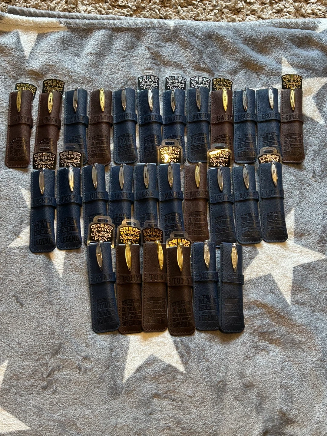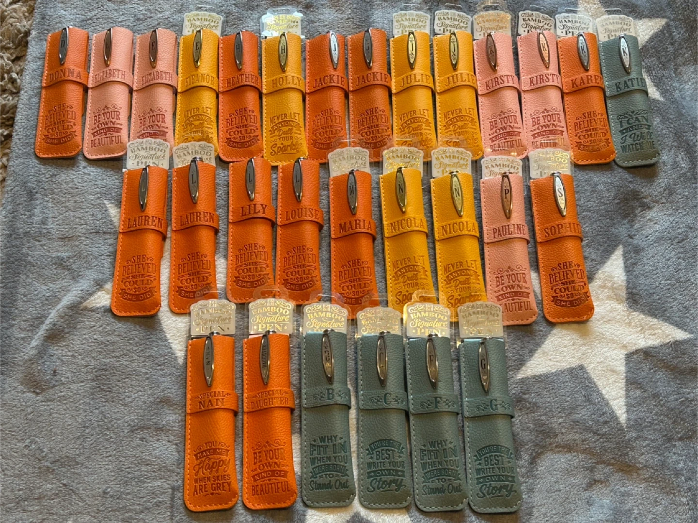 10 reviewsI have a selection of brand new, personalised bamboo signature pens available. Each pen comes in its own case, making it a lovely little gift. Each case has a different name on it, so please let me know which name you'd like! Please see list for names available