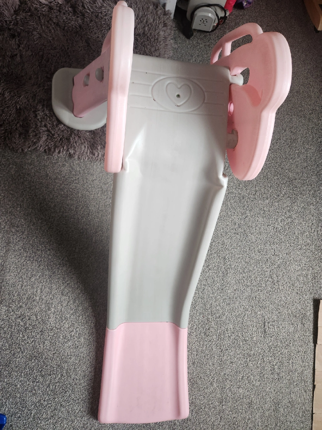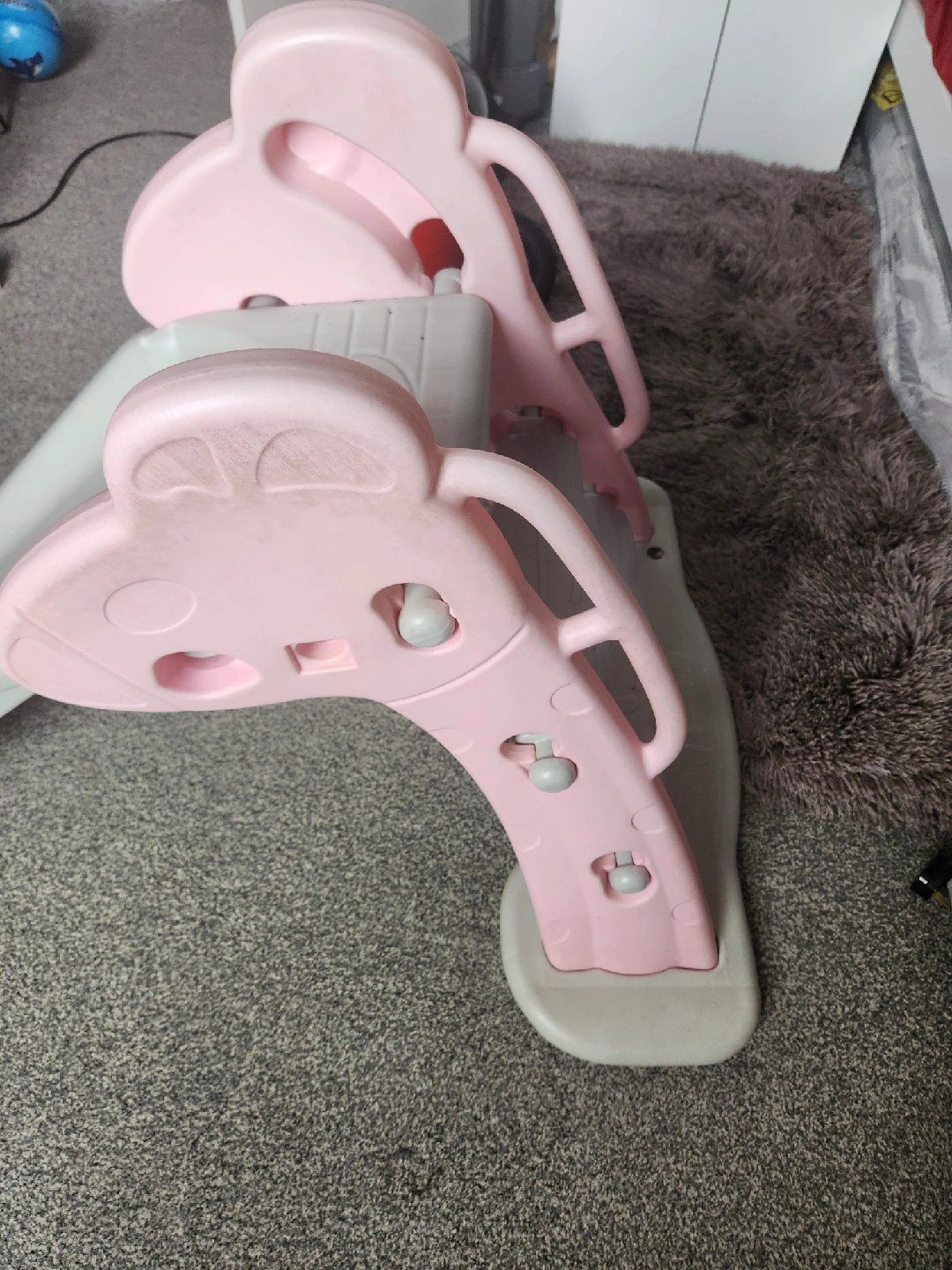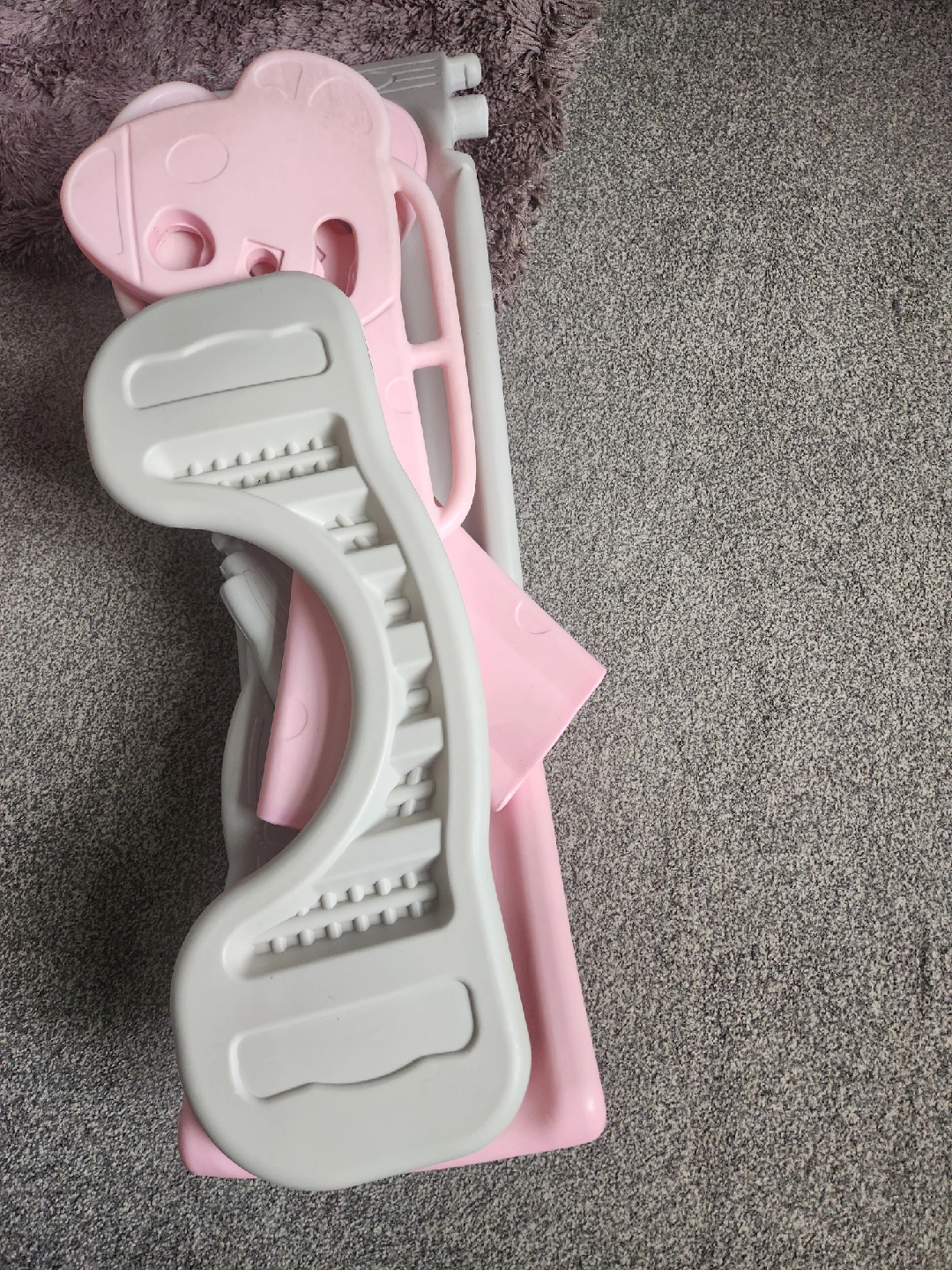 9 reviewsSelling a cute pink and white slide for little ones! It's in good condition and perfect for indoor or outdoor fun. The steps have little foot prints on them!