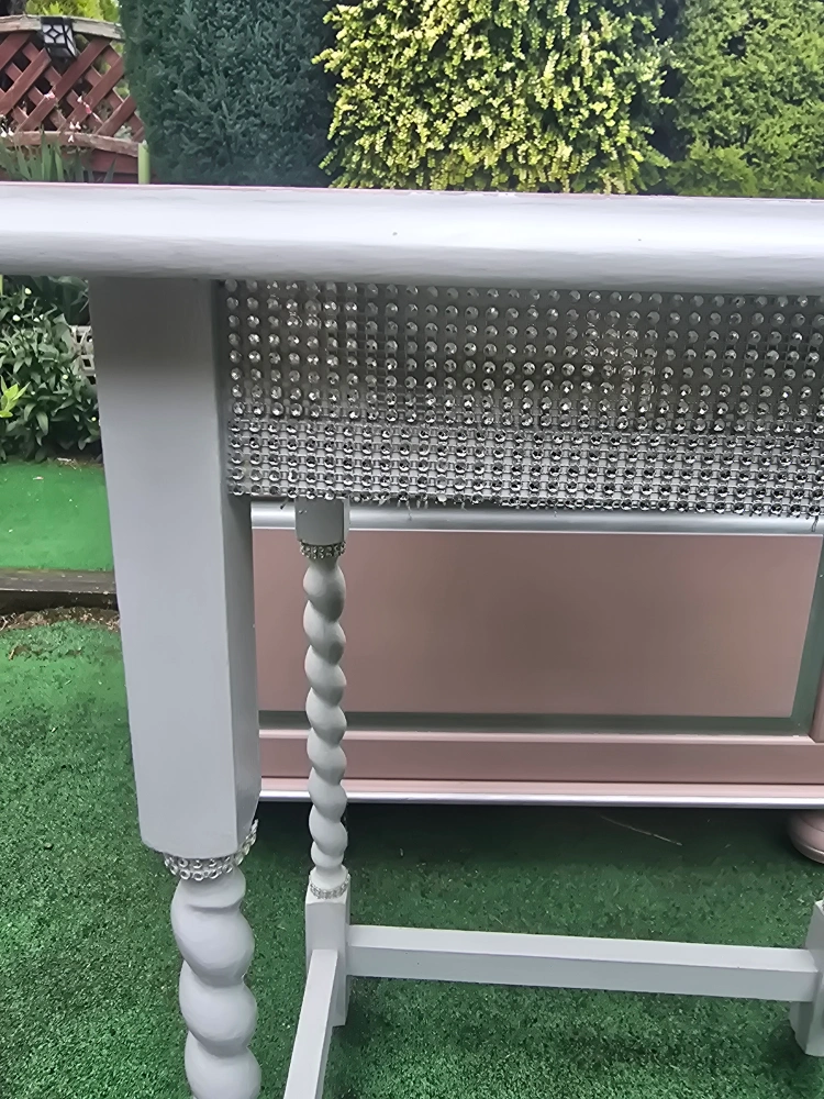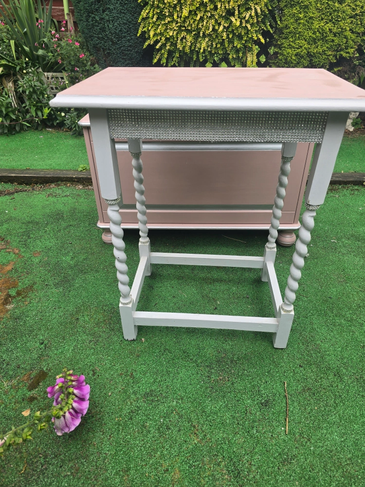 473 reviewsA lovely pink bedside table with a decorative design. It's a charming piece that would look great in any bedroom. The table is in good condition and ready for a new home Also selling the matching bedding box