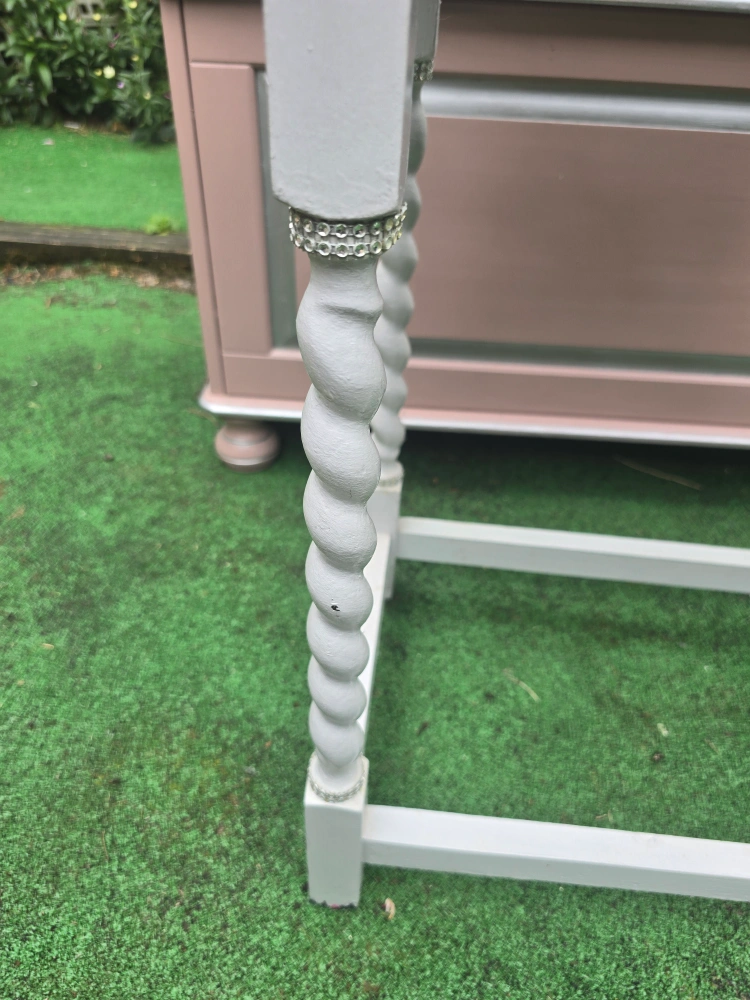 473 reviewsA lovely pink bedside table with a decorative design. It's a charming piece that would look great in any bedroom. The table is in good condition and ready for a new home Also selling the matching bedding box