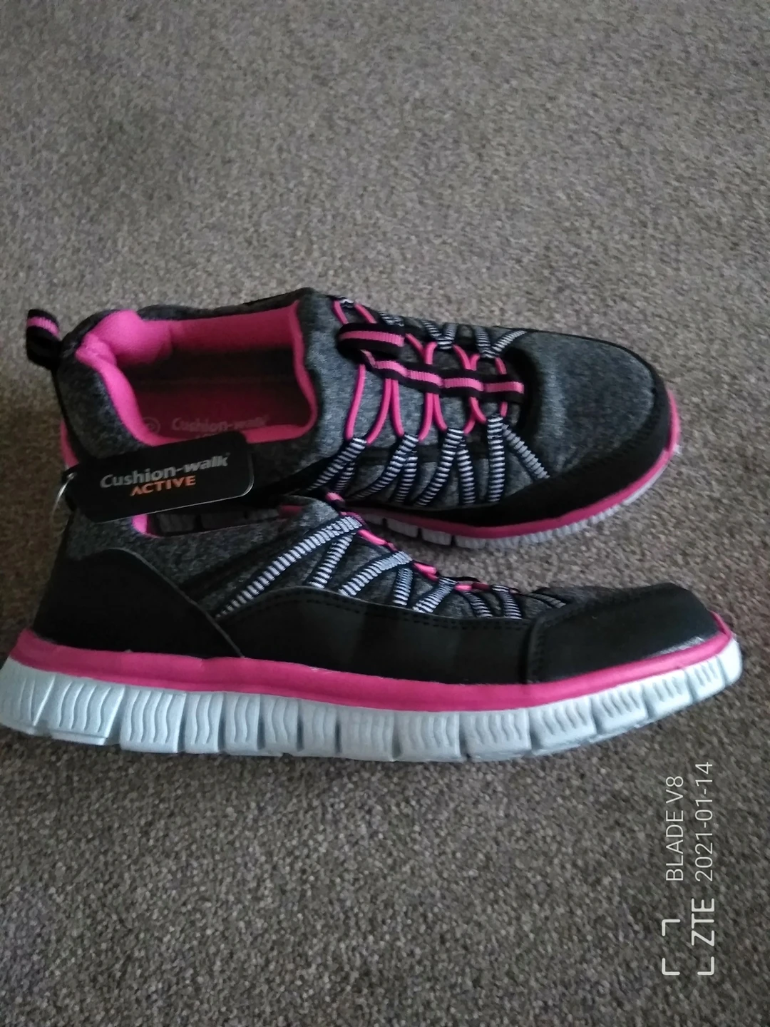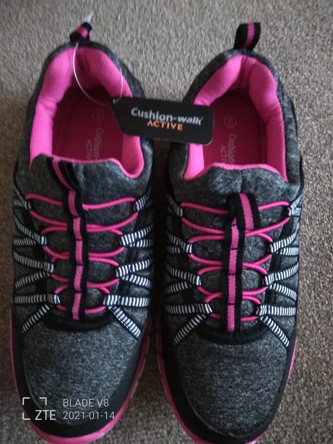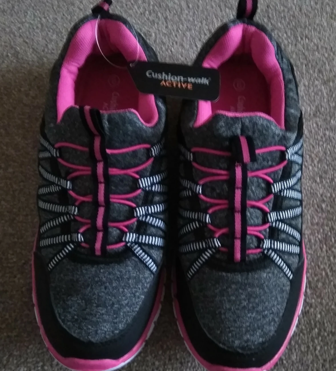 3 reviewsBrand New with original tags cushion walk women's size 6 pretty pink and grey comfortable trainers. lovely colours, pull on style. Eastleigh area.