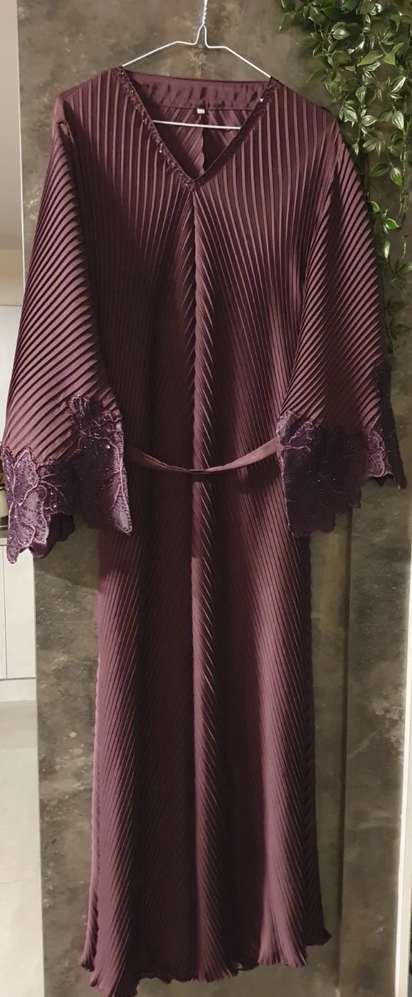 13 reviewsBrand new Size 54 A lovely pleated abaya dress with floral lace sleeves detailing. Comes with a scarf It would be a wonderful addition to your wardrobe! Collection or can post for the cost of p&p No Offers Please