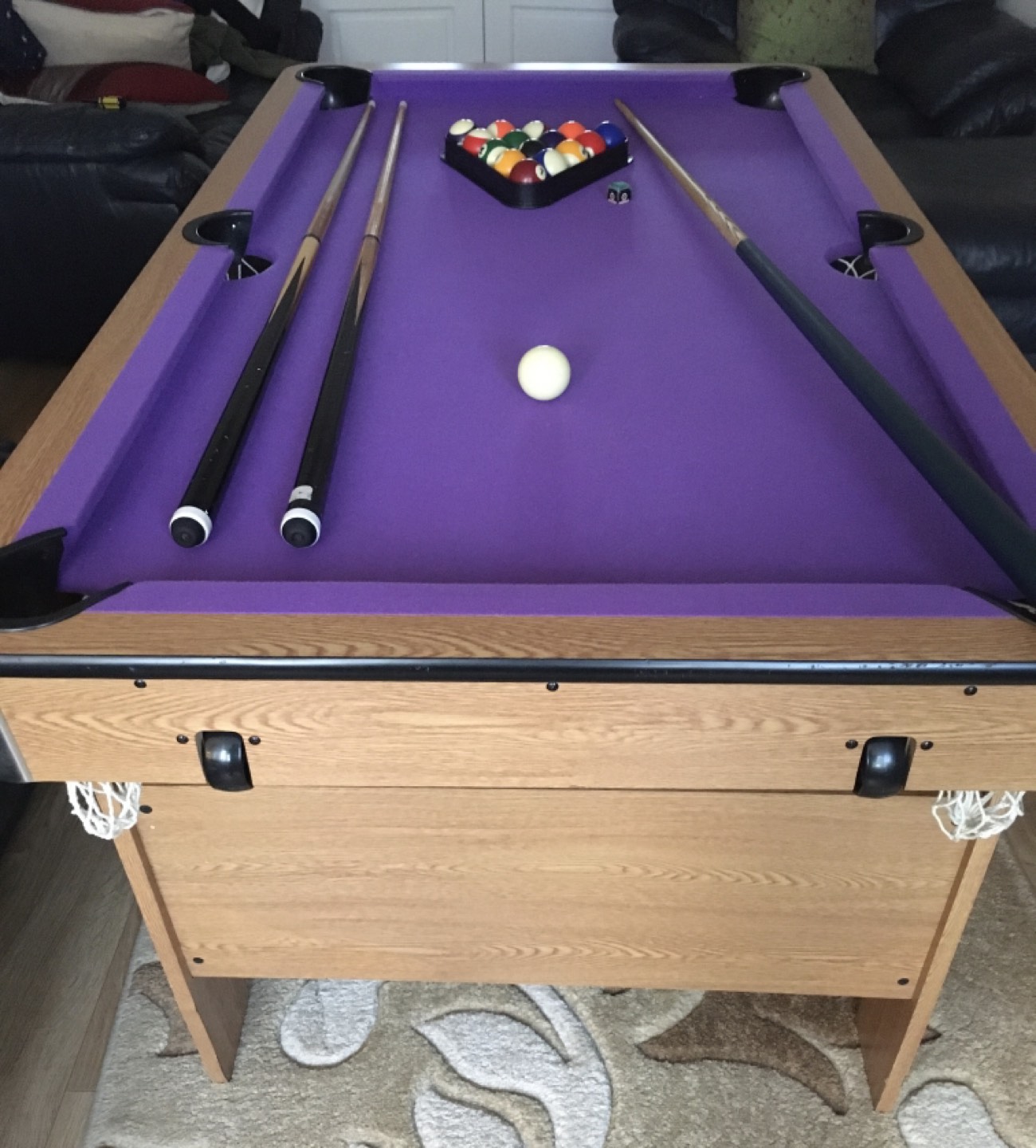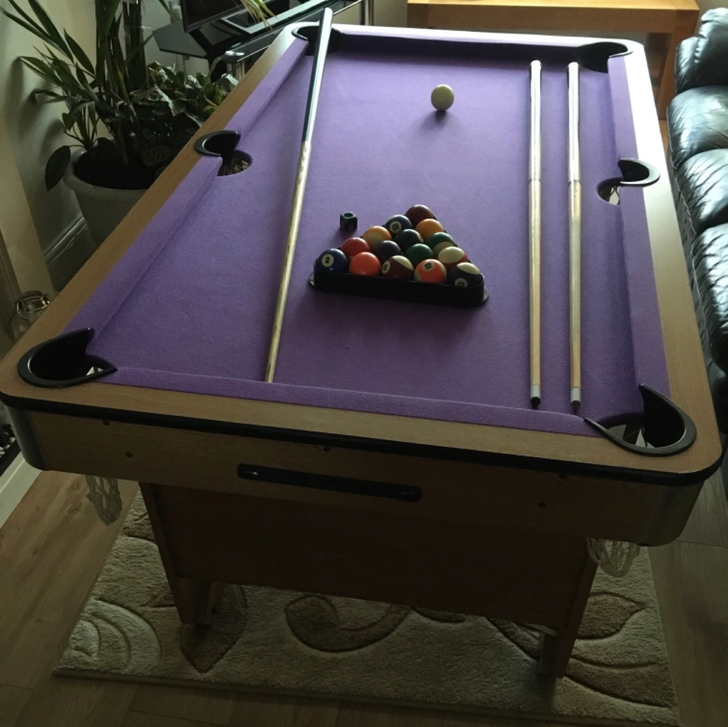 0 reviewsNOW REDUCED FROM £60 to £50 excellent 5 foot pool table with all balls, triangle, chalk plus 3 cues(1 is a professional snooker cue). Table can be easily folded to store away. Cloth is in immaculate condition. Reduced!!!