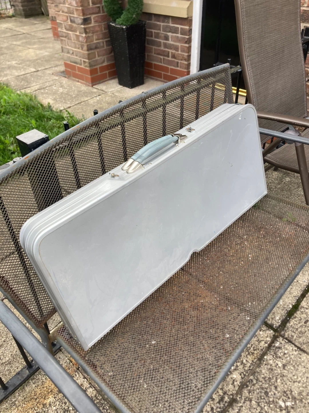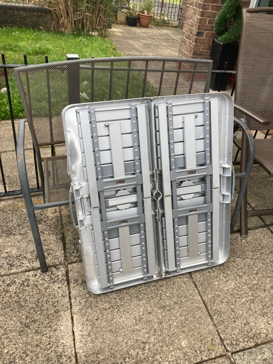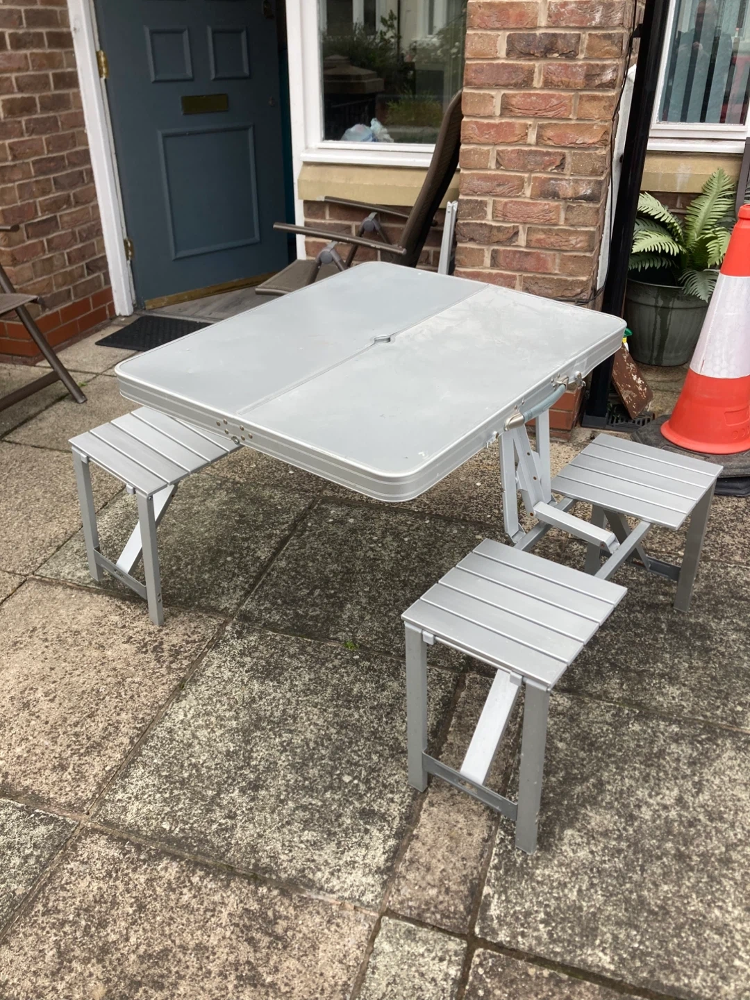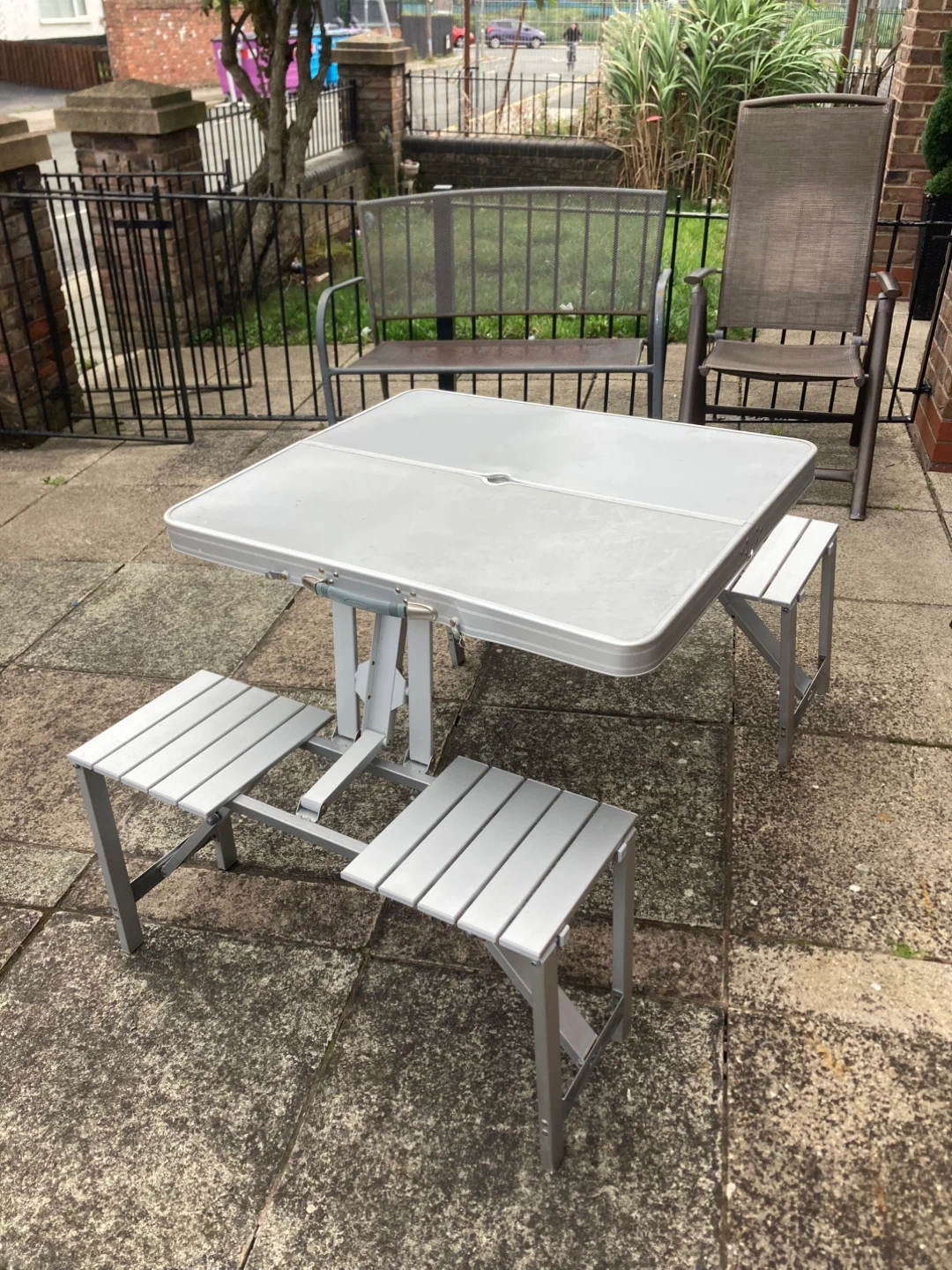334 reviewsSelling a handy portable alloy metal picnic table with attached seats. It's perfect for picnics, camping, or just a day out. Folds up neatly for easy storage and transport. Great for family outings!