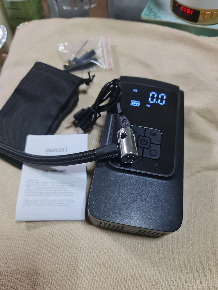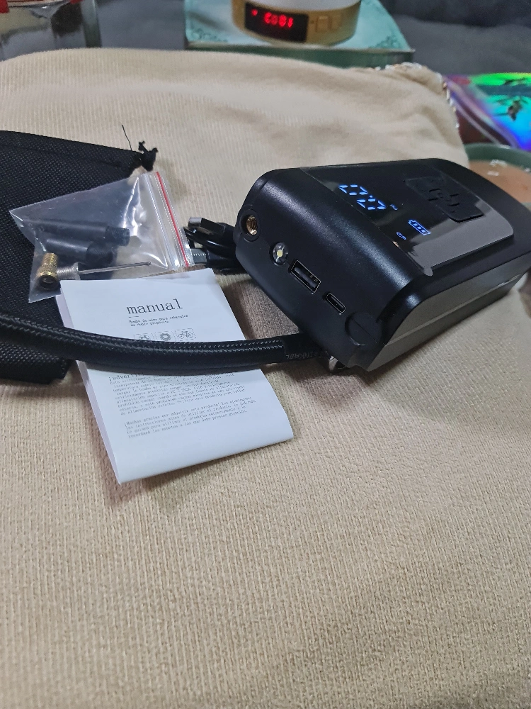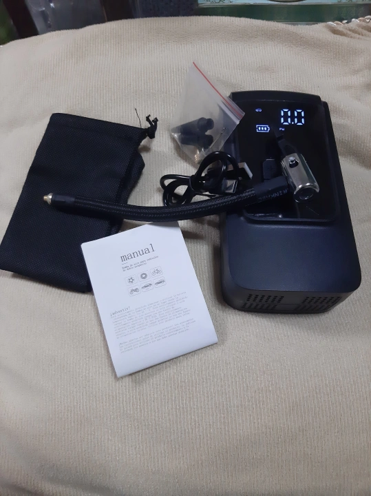 3 reviewsHandheld digital tyre inflator. Includes various nozzle attachments, carry bag and instruction manual. Features a digital pressure gauge. Great for car tyres, bicycle tyres and more.