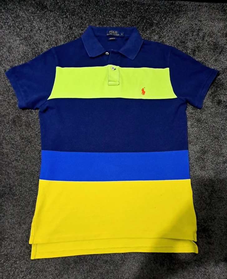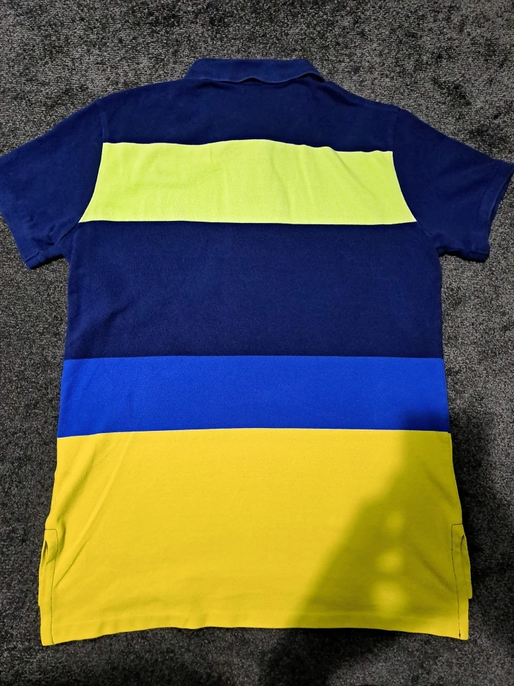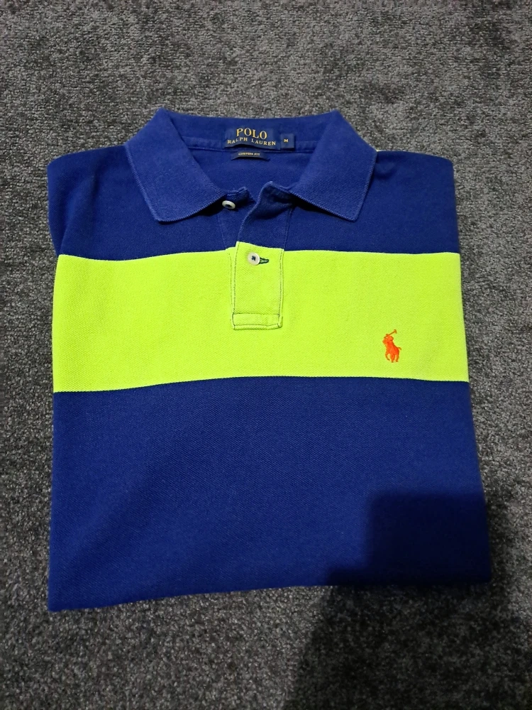 0 reviewsRalph Lauren polo shirt in a striking colour block design. It's a custom fit and made from 100% cotton, so it's nice and comfy. Size is M.
