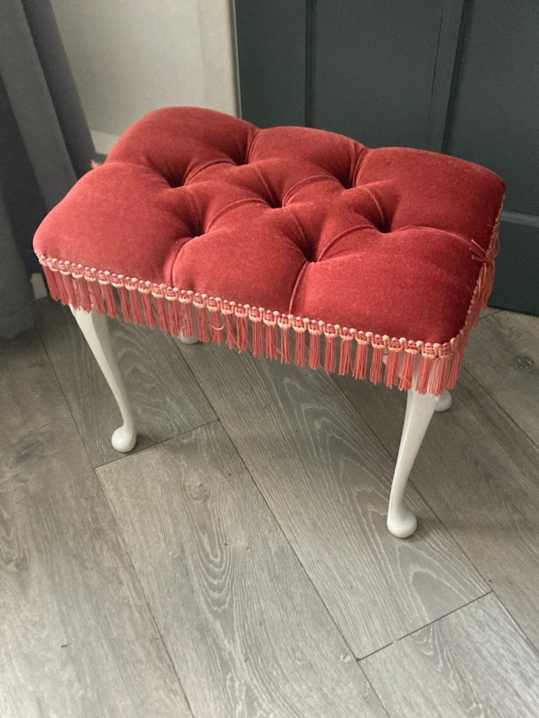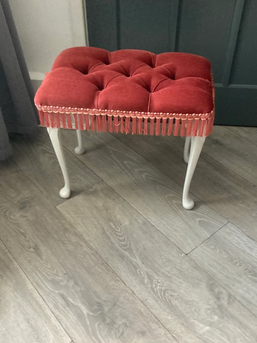 334 reviewsA charming little stool, perfect for adding a touch of elegance to any room. It features a lovely red buttoned cushion and stylish white legs. It's in good condition and ready to find a new home!