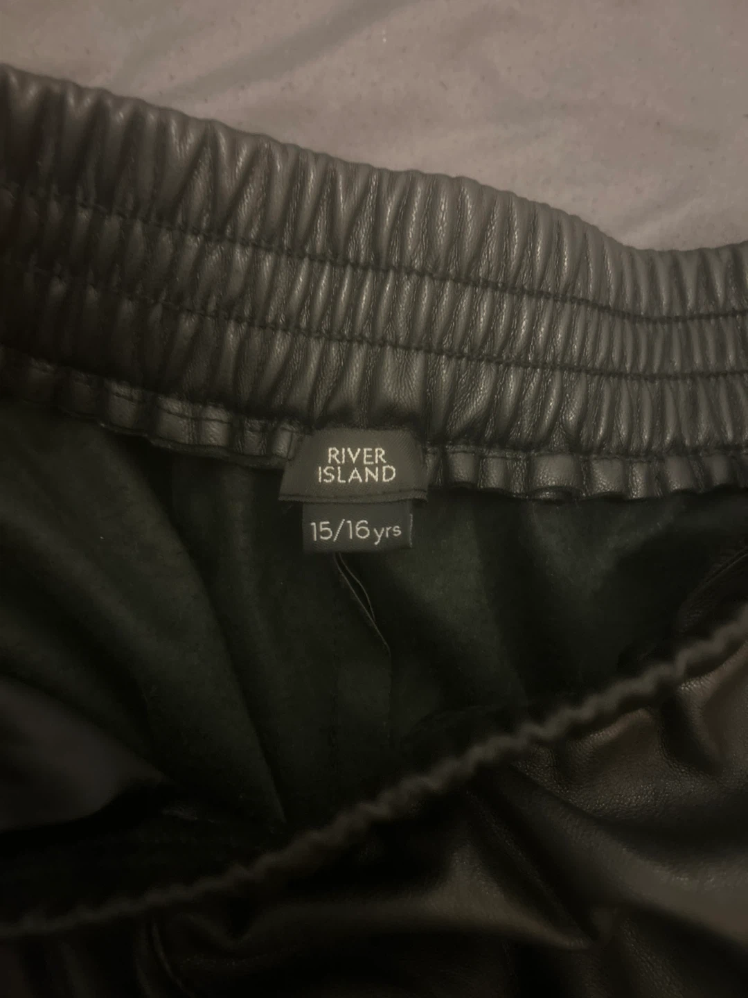0 reviewsRiver Island faux leather trousers in size 15/16 years. These black trousers feature a comfortable elasticated waistband and stylish detailing.