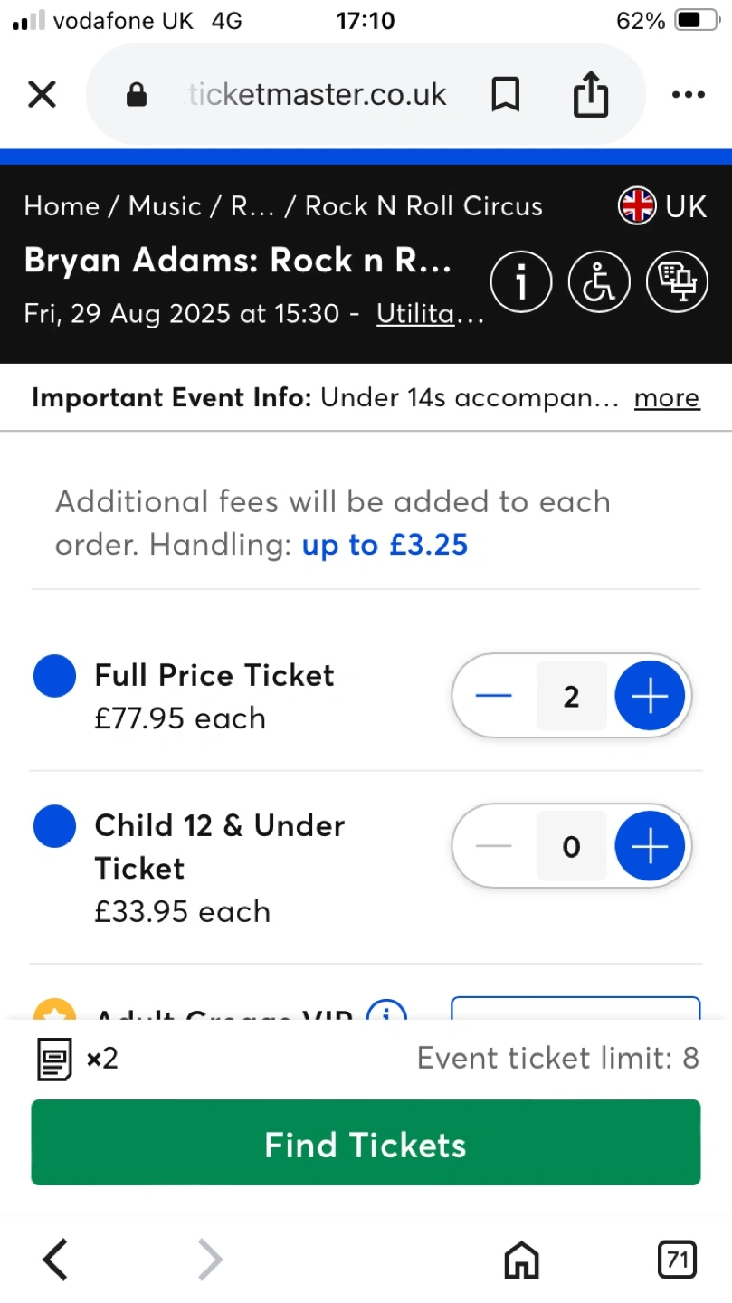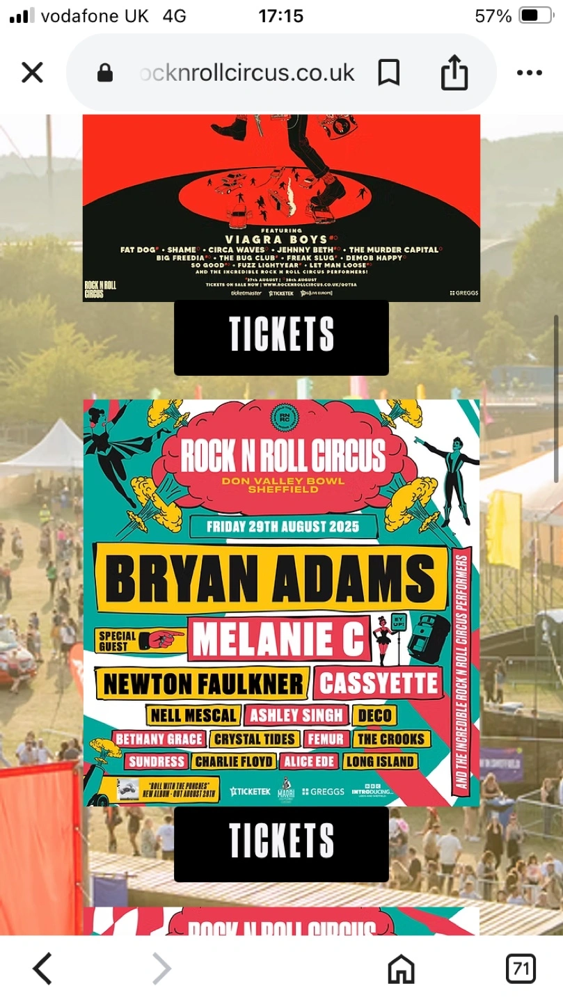 5 reviewsI'm selling a ticket for the Rock N Roll Circus featuring Bryan Adams on Friday, 29th August 2025, at Don Valley Bowl in Sheffield. Enjoy a night of rock and roll with special guests and other incredible performers! Retail at £77 each , selling for £90 for the pair Tickets can be emailed over