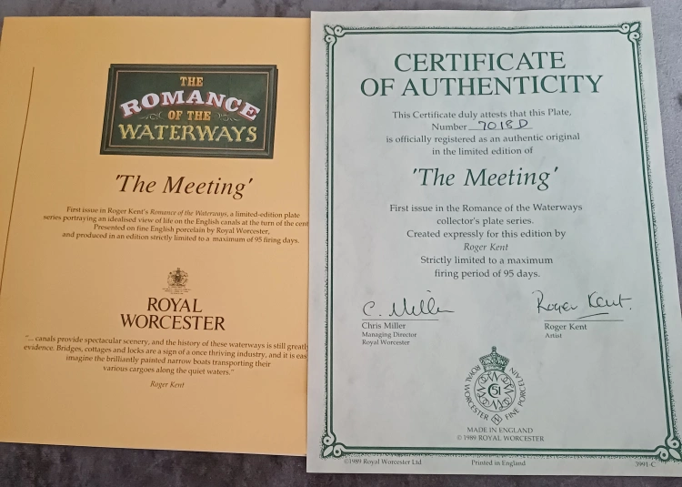 0 reviewsFirst issue in Roger Kent's Romance of the Waterways, a collector's plate series depicting scenes of canal life in England at the turn of the century. Edition strictly limited to a maximum firing period of 95 days.