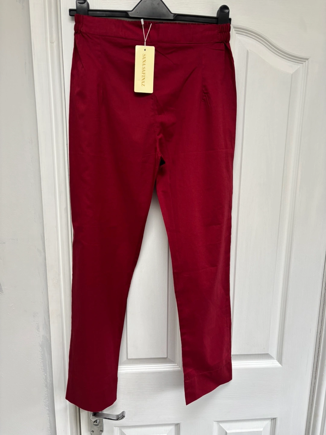 1 reviewHere are some lovely burgundy trousers from Sana Safinaz. They appear to be in excellent condition and would be a great addition to any wardrobe!