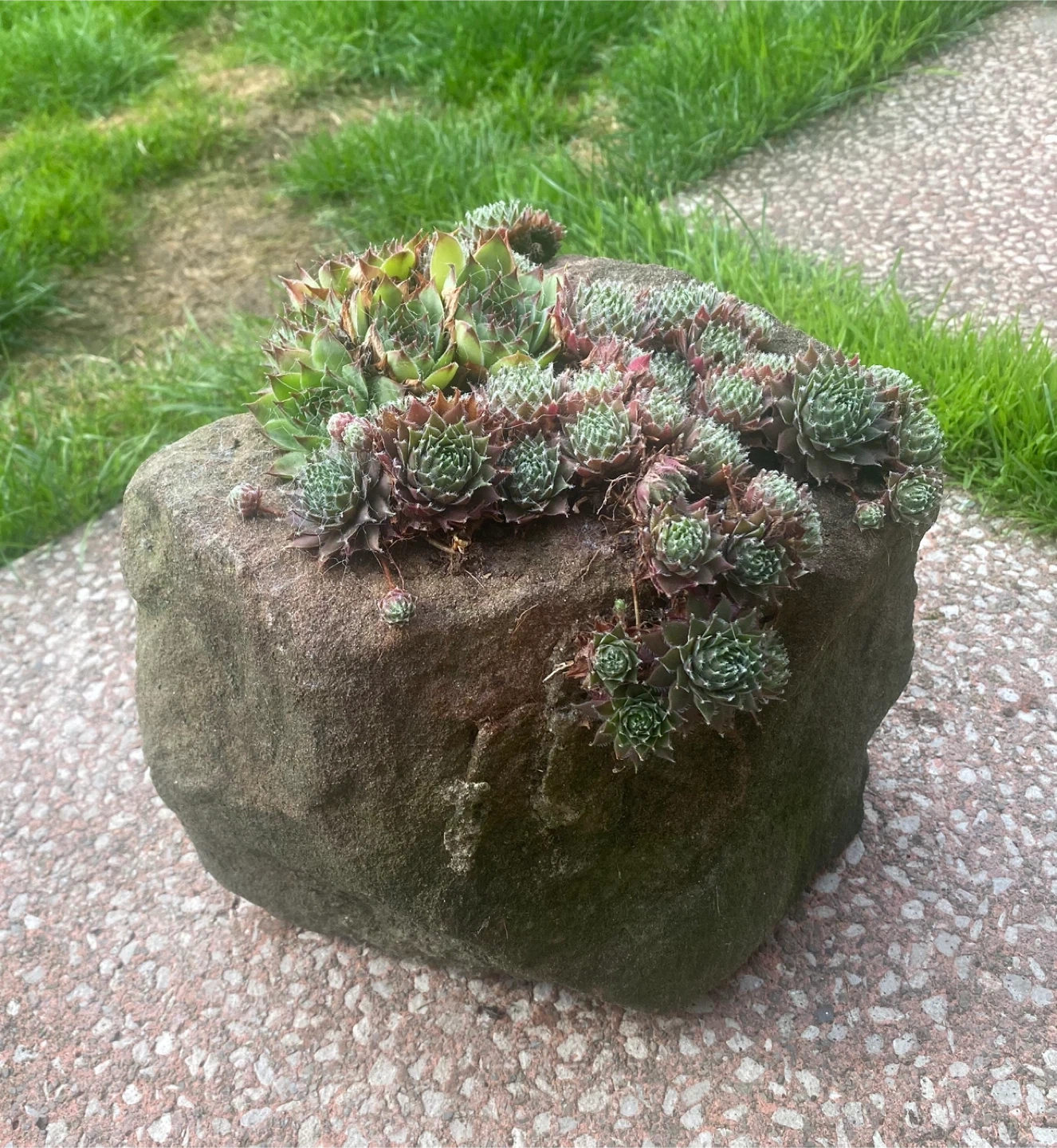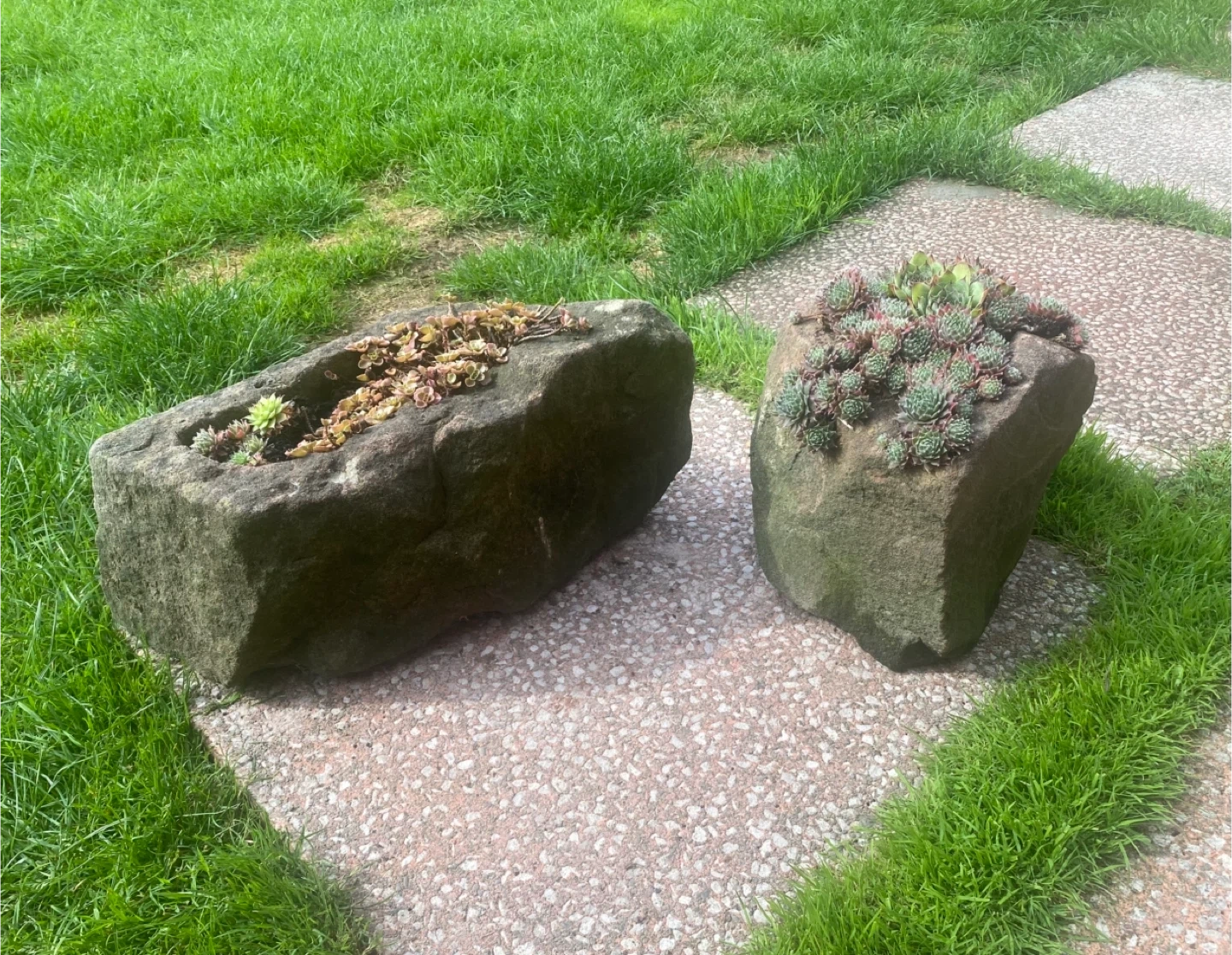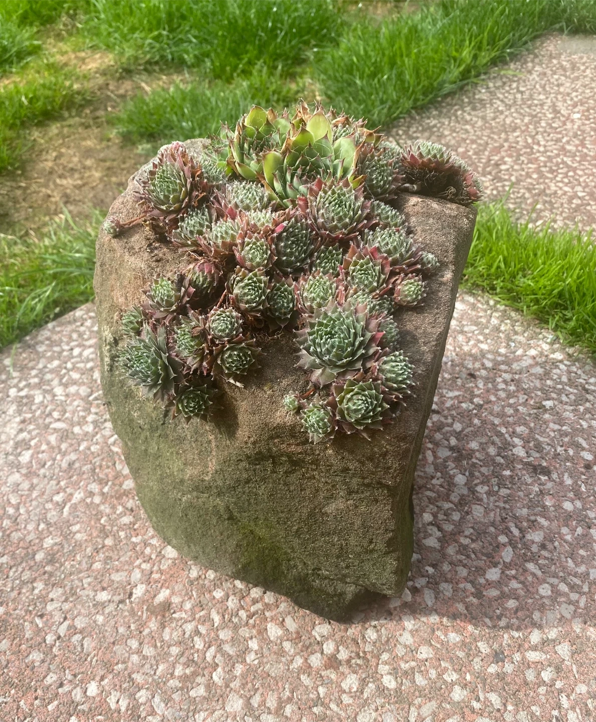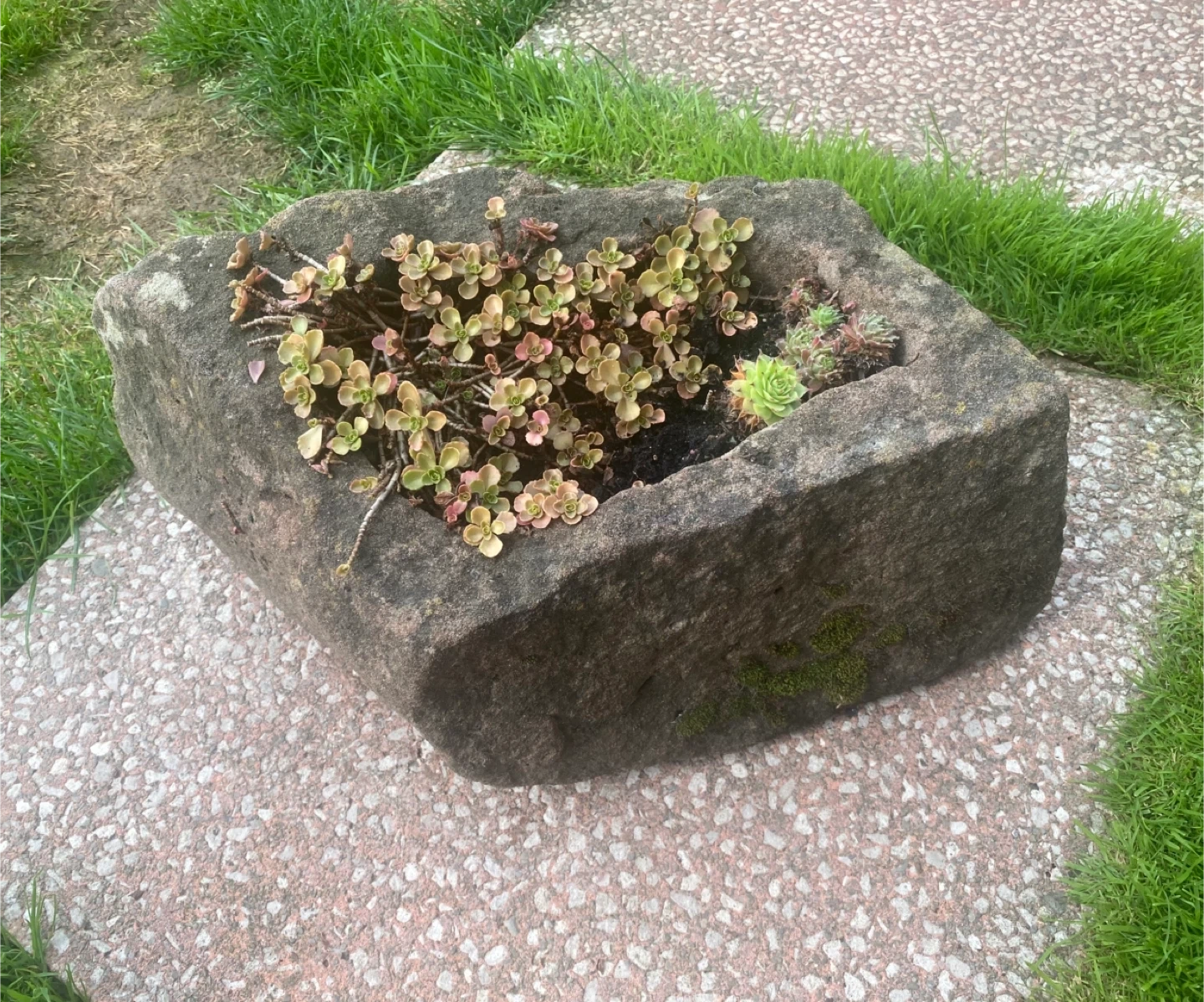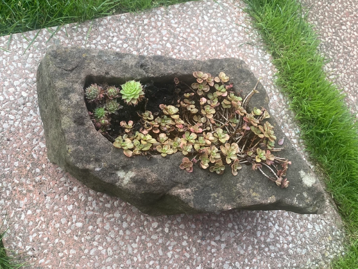 4 reviewsI have two sandstone planters made from natural sandstone. These are very heavy, there are drain holes in the bottom and have a natural mossy weathered patina to them. Ideal for placing on paths and patios. Both are planted and established. The small one is roughly 200 x 200 x 200 mm, the large one is 300 x 260 x 200 mm (L,W,H) Due to the weight it’s collection only.