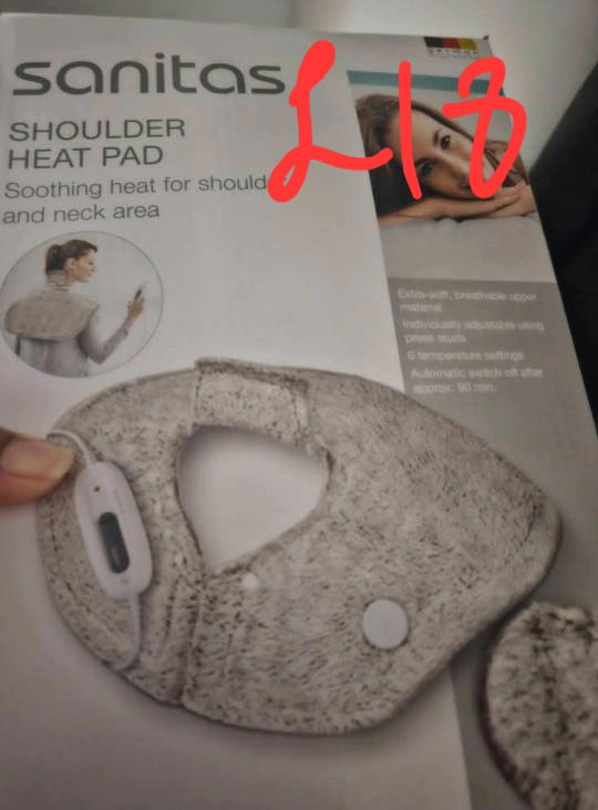 30 reviewsHere's a Sanitas shoulder heat pad, perfect for soothing your shoulders and neck. It's got an extra-soft, breathable upper material and is individually adjustable using press studs. There are 6 temperature settings and an automatic switch-off after approximately 90 minutes