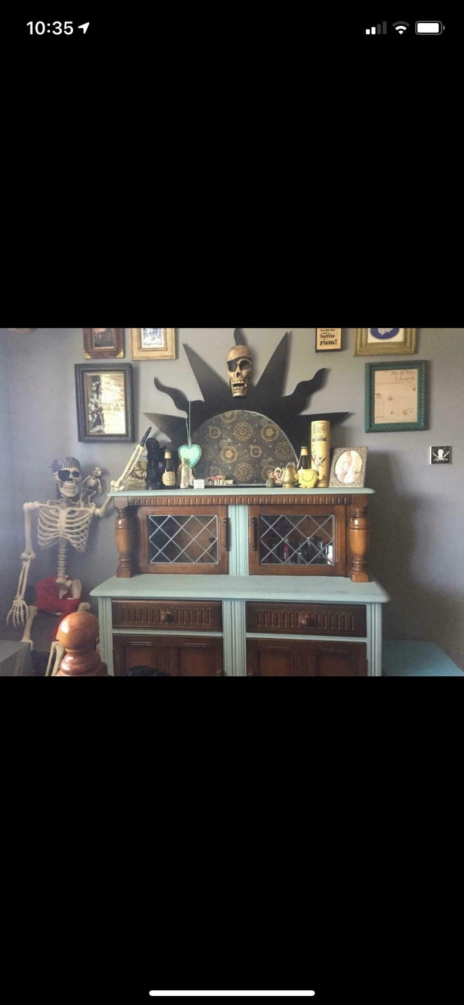 0 reviewsLovely semi circle mirror with black sun surround. Note that this listing is only for the mirror above the cupboard and nothing else. Collection is from Lordswood.