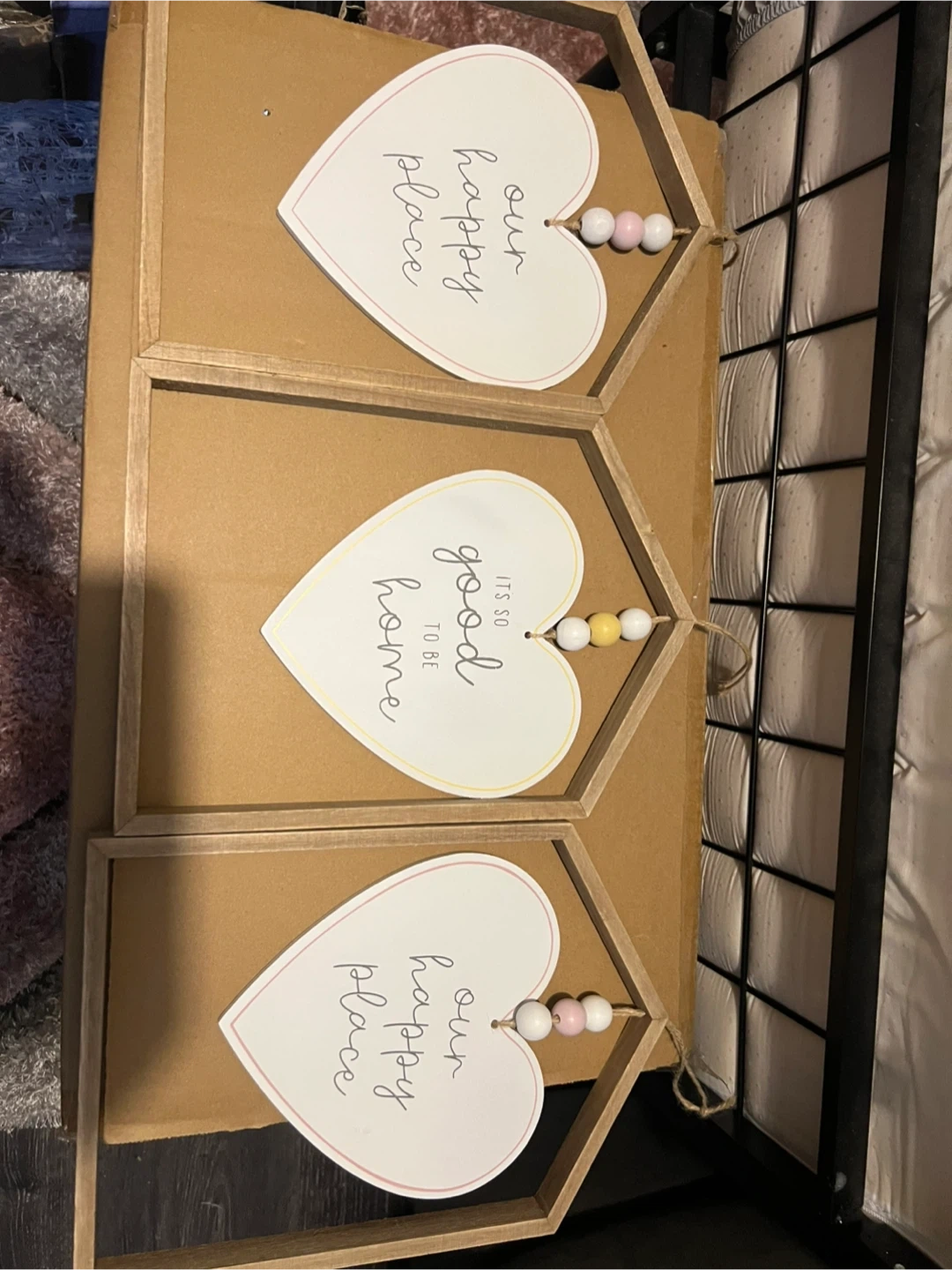 0 reviewsHere's a set of three adorable heart-shaped wall decorations. Each one has a unique little saying on it, perfect for adding a touch of warmth to any room in your house pick up b29