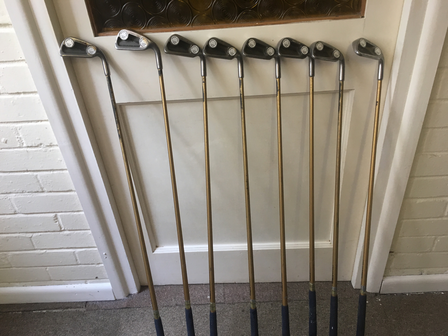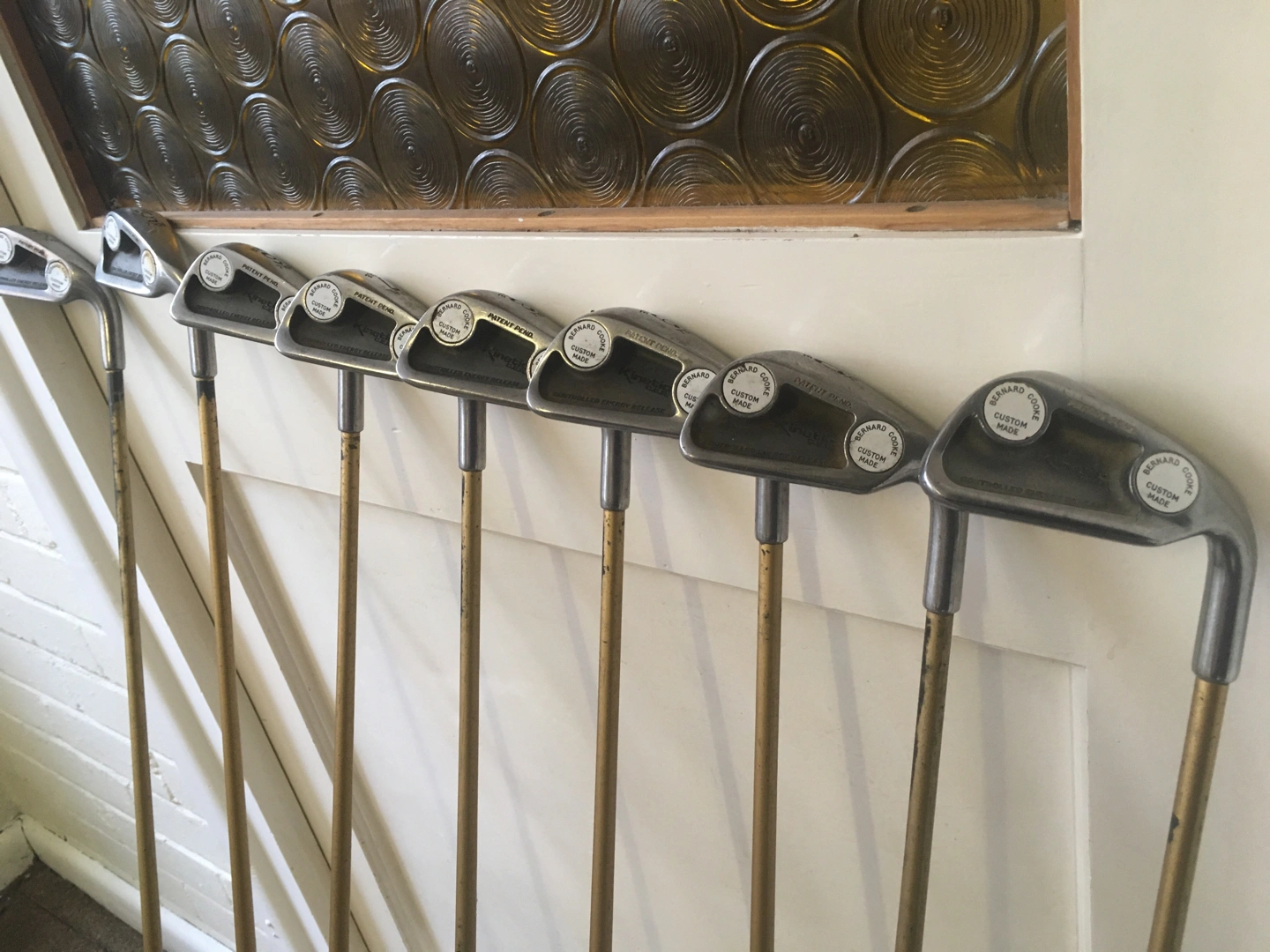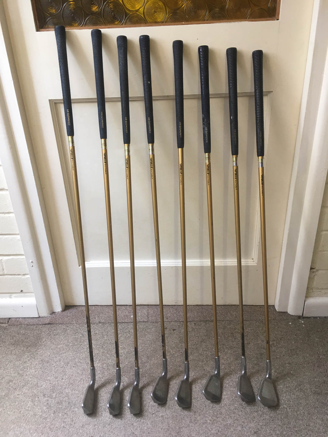 0 reviewsSet of 8 golf club irons (4 up to wedge and sand wedge). Custom made by Bernard Cooke. Steel shafts, heads and grips in excellent condition. Buyer to collect please.