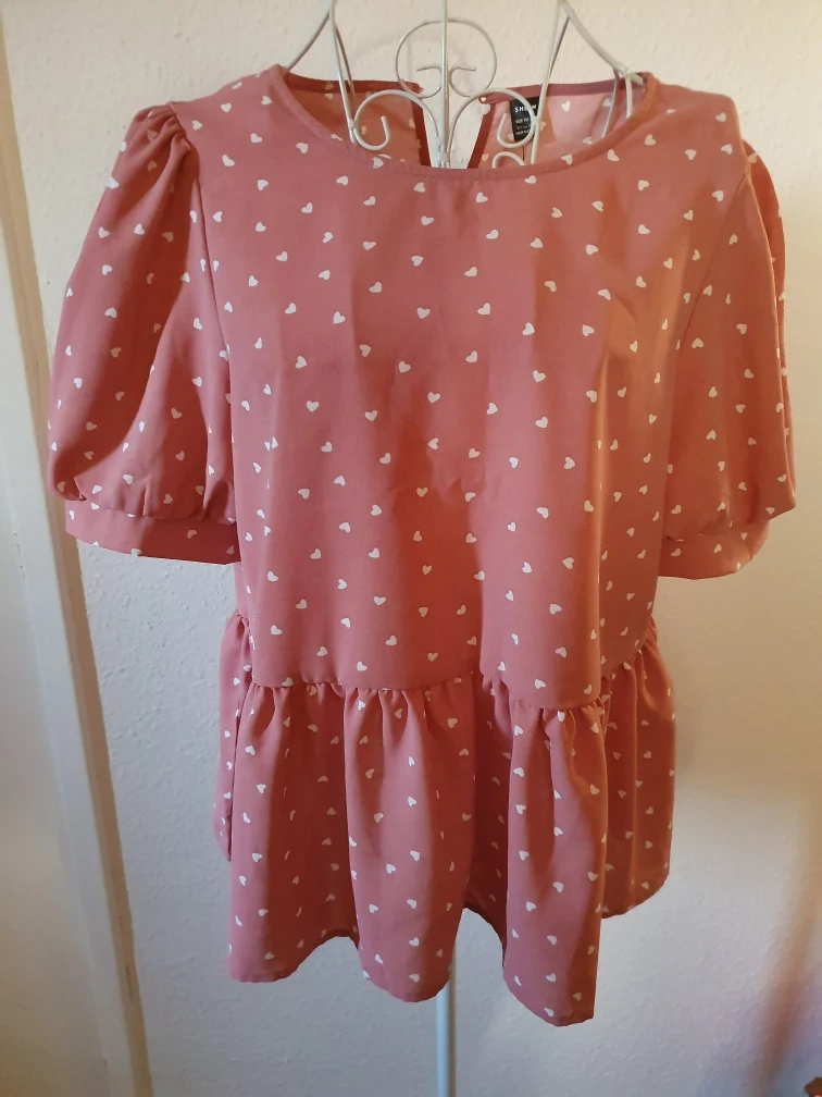 0 reviewsA lovely Shein top in a charming pink colour with a cute heart print. It's a size L and would be a great addition to your wardrobe 0031
