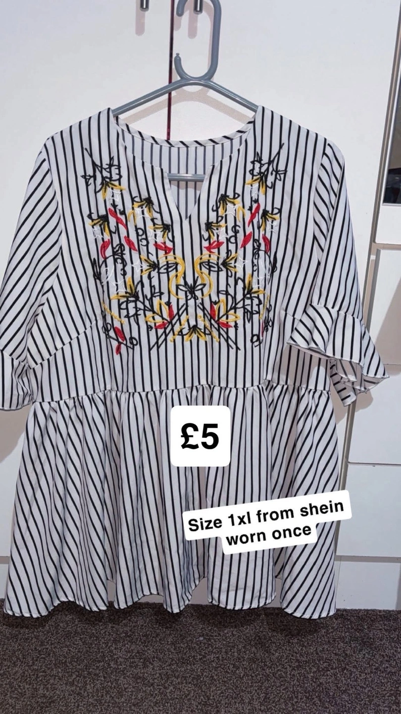 Show allStripy dress from Shein. It's a size 1XL and has only been worn once. It's got a lovely embroidered design on the front too!