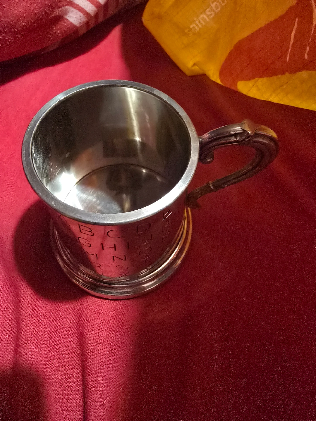 1 reviewHere's a lovely silver plated christening mug. It has the alphabet engraved around the base. Perfect for a little one!