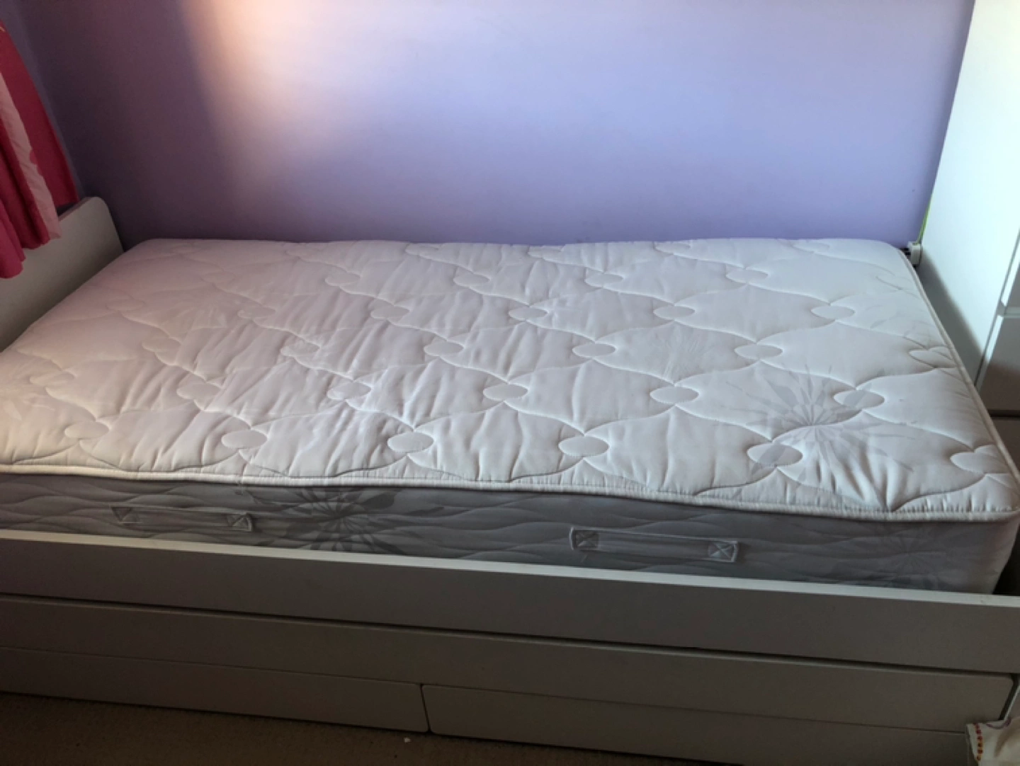 0 reviewsSingle bed with pull out guest bed and 2 large storage drawers from IKEA (worth £165) in excellent condition. The pull out bed has a mattress that came separately from IKEA and has only been slept in a handful of times. This is now dismantled for ease of transport. Priced for a quick sale. Oos
