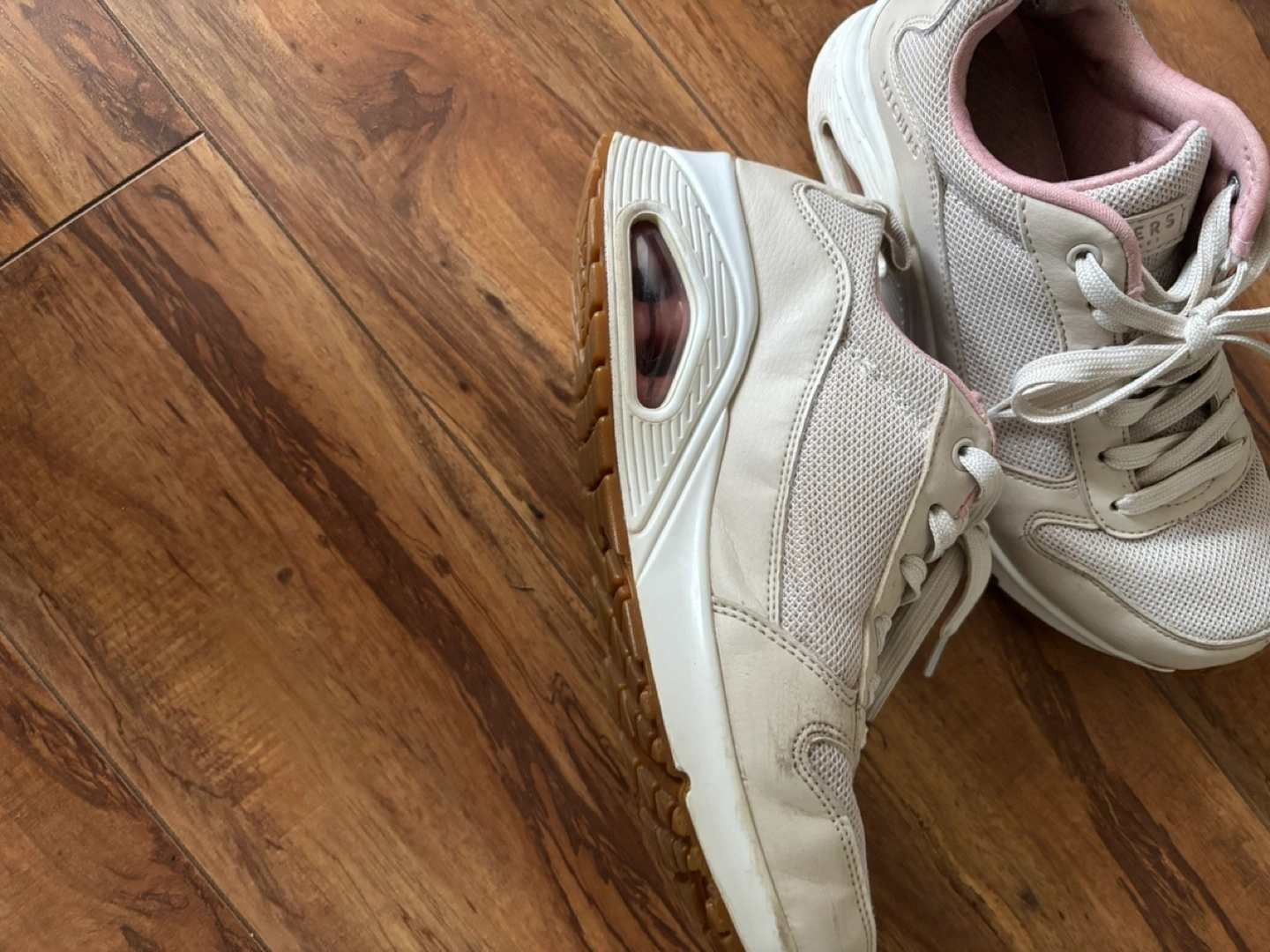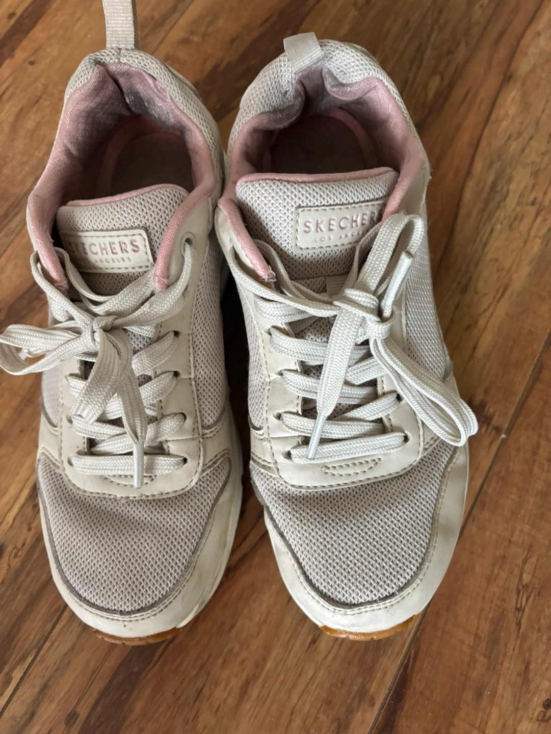 1 reviewCream coloured trainers with hi pink detailing. Lace-up fastening. Good condition. Suitable for everyday wear.