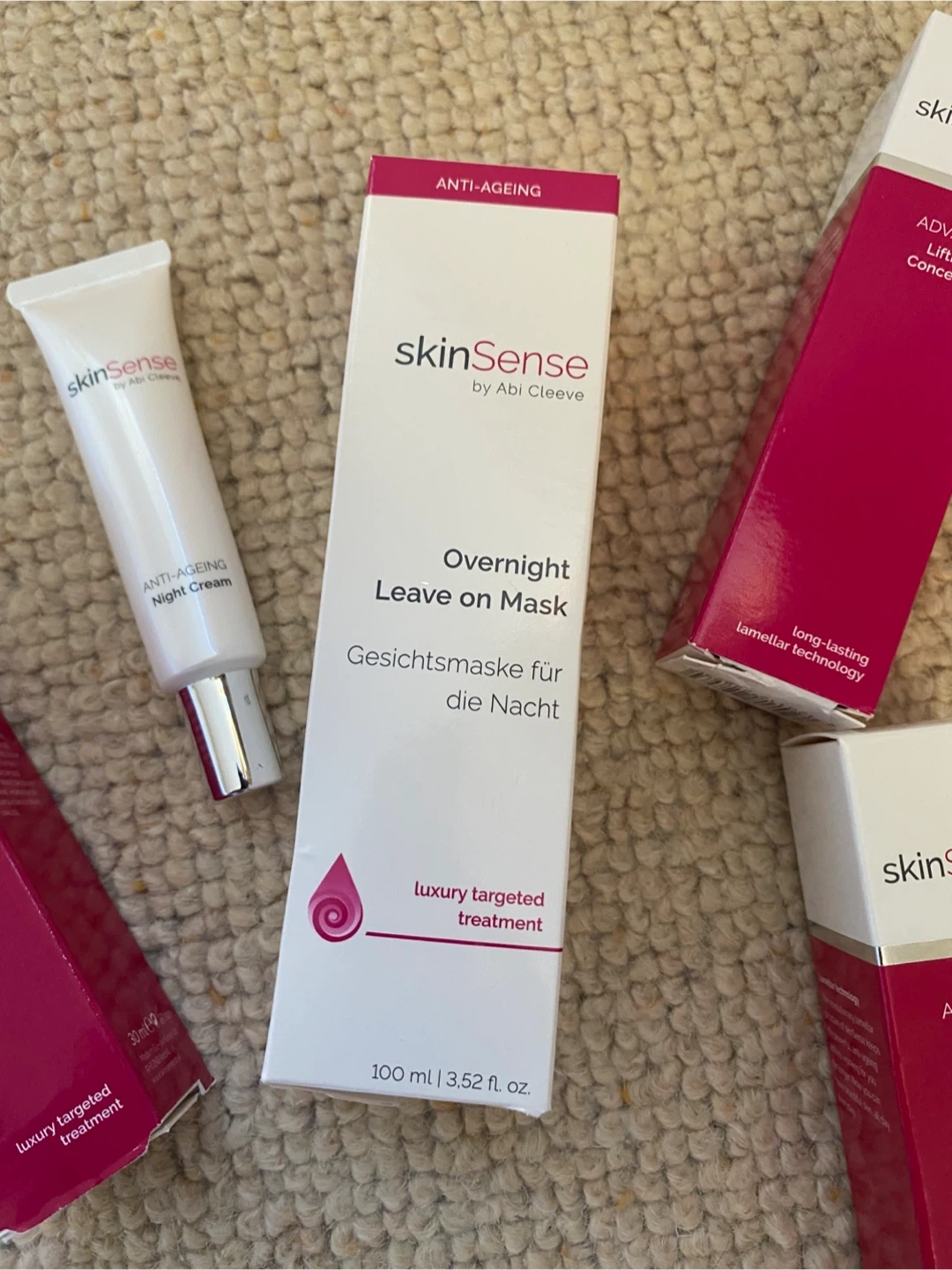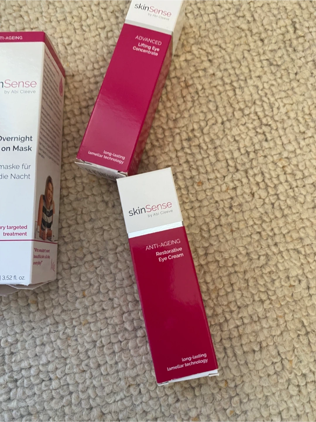 43 reviewsHere's a lovely skinSense by Abi Cleeve anti-ageing set to keep your skin looking its best! Included are: - Advanced Lifting Eye Concentrate - Restorative Eye Cream - Night Cream - Overnight Leave on Mask All items are part of the anti-ageing range and feature long-lasting lamellar technology whole bundle