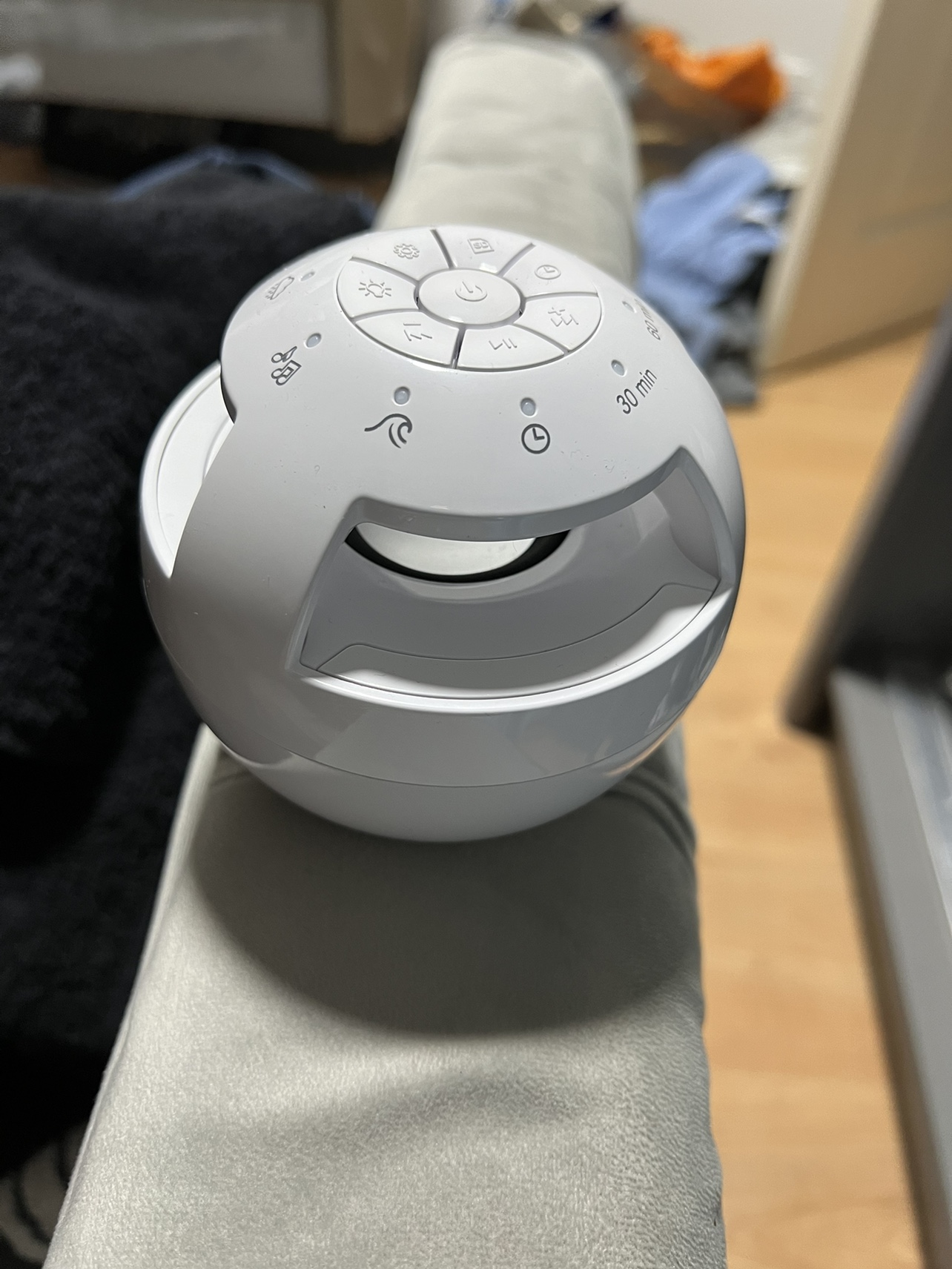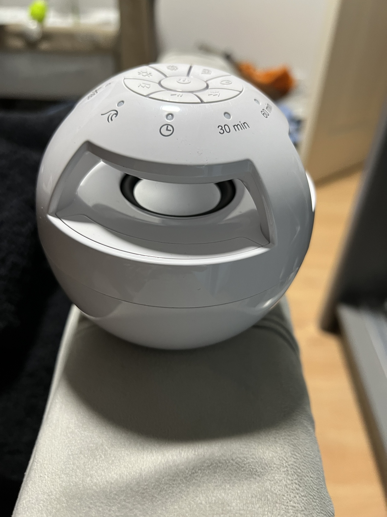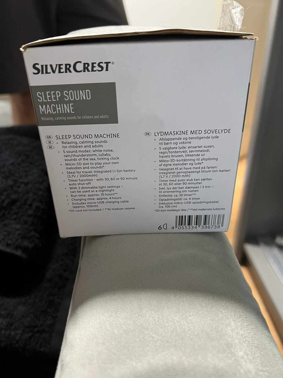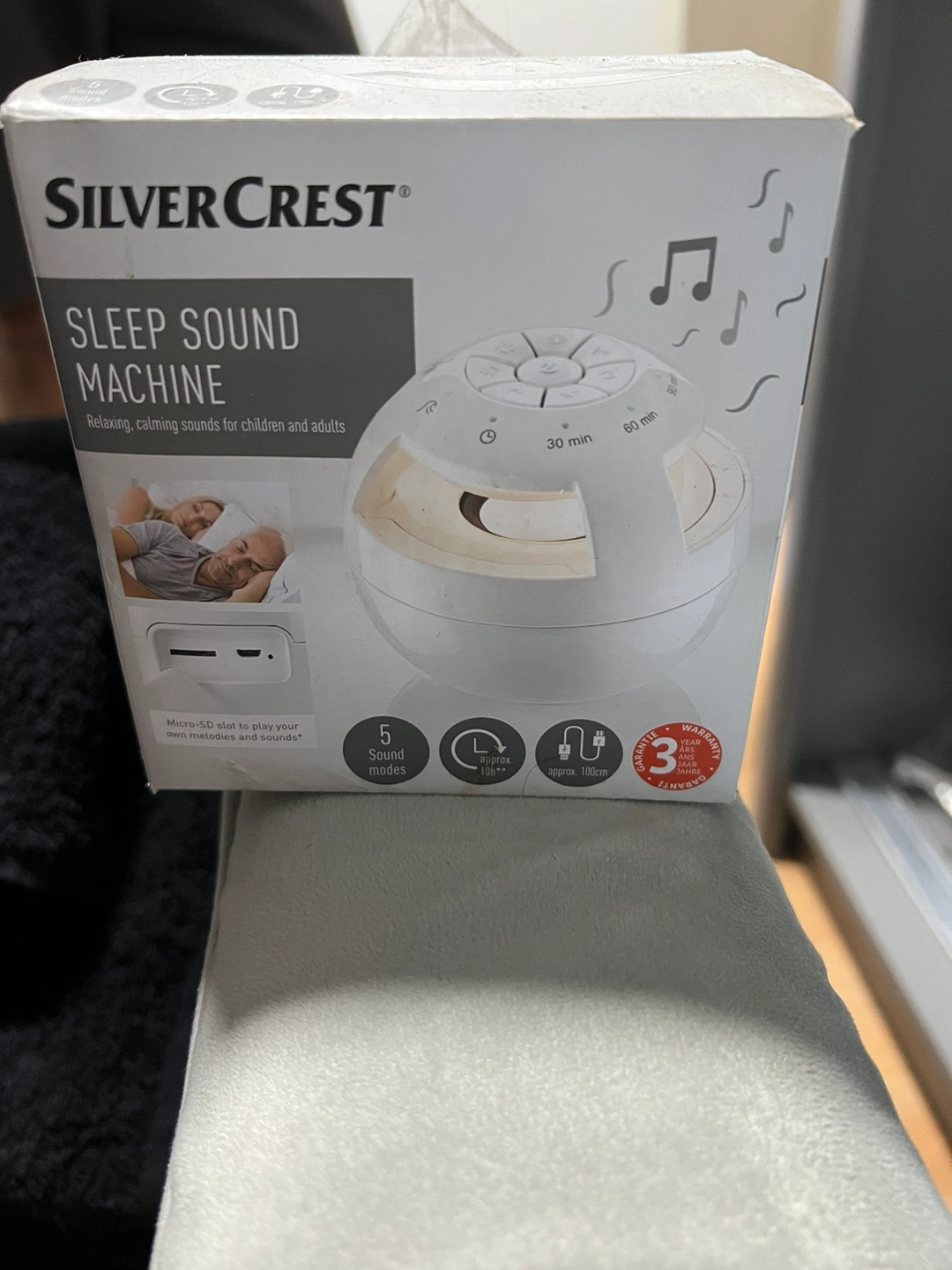 0 reviewsSLEEP SOUND MACHINE • Relaxing, calming sounds for children and adults . 5 sound modes: white noise, rain/thunderstorm, lullaby, sounds of the sea, ticking clock • Micro-SD slot to play your own melodies and sounds* • Ideal for travel: integrated Li-Ion battery (3.7V / 2000mAh) • Timer function - with 30, 60 or 90 minute auto shut-off • With 3 dimmable light settings - can be used as a nightlight • Run time: approx. 10 hours** • Charging time: approx. 4 hours *SD card not included / **At medium volume