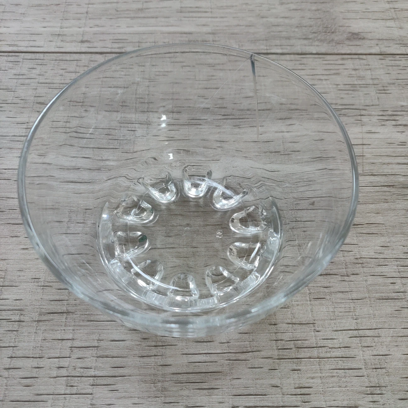 1 review1x small glass bowl which is chipped on the side (as pictured). Diameter - as pictured. The bowl is still usable, posting here first before recycling it.
