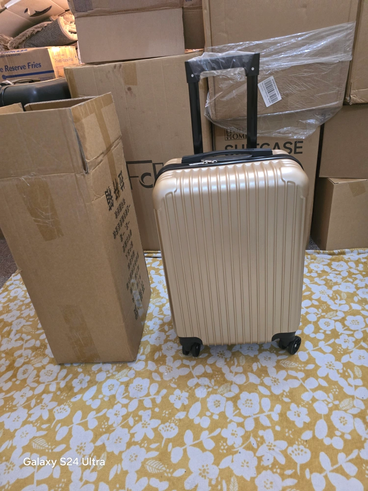 1 reviewSelling a small gold coloured suitcase. It's in good condition and perfect for short trips away. The box says it's a 20 inch suitcase.