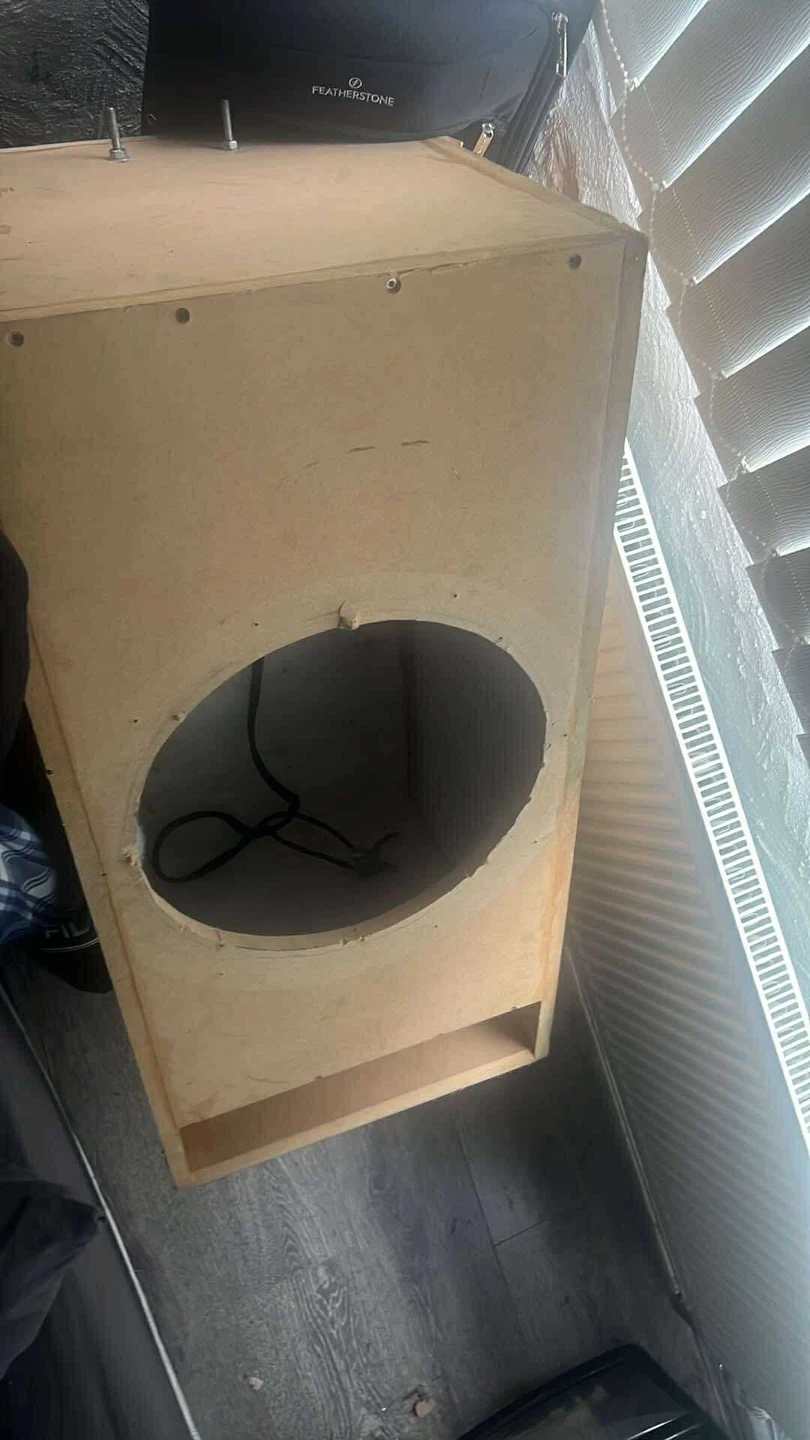0 reviewsSelling a speaker cabinet. It appears to be made of wood and has a circular opening for a speaker. There's some wiring inside and some padding. 15” sub box only. Call me on 07907748447